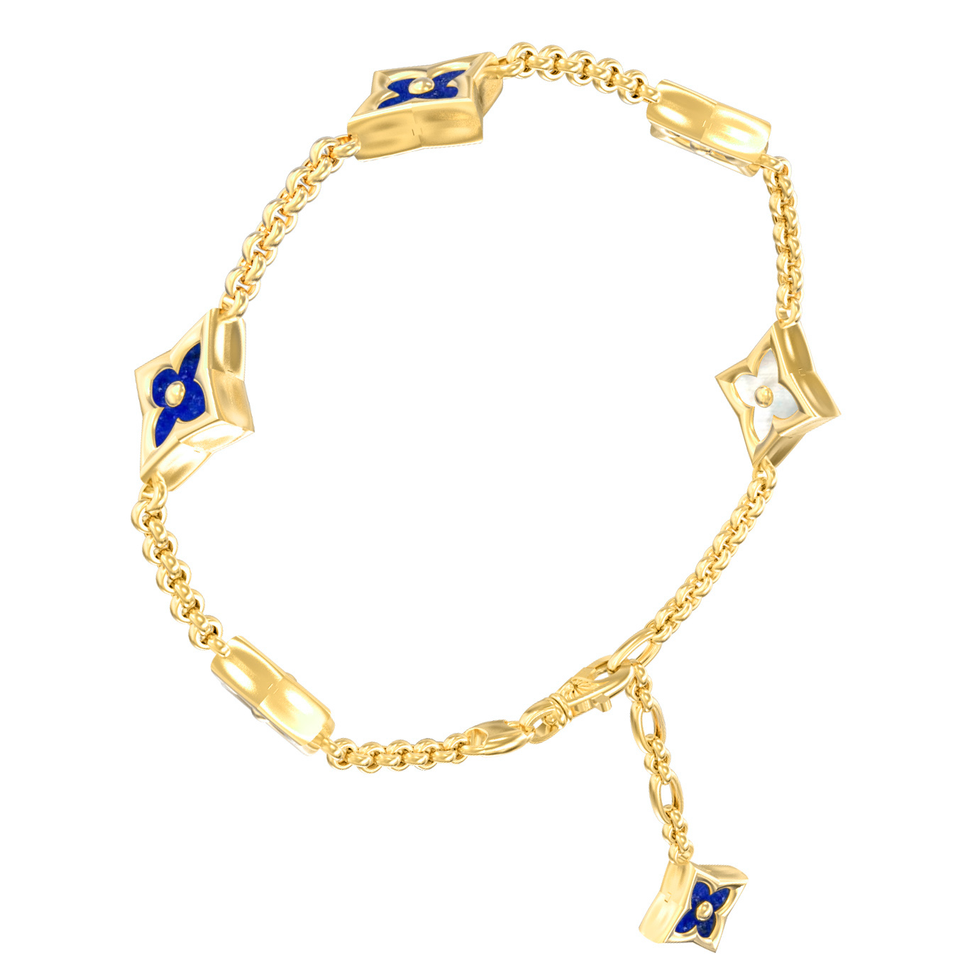 Браслет из лимонного золота c лазуритом и перламутром