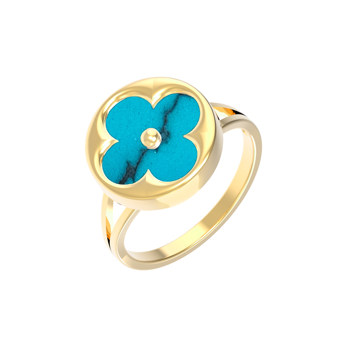 Кольцо из лимонного золота c бирюзой