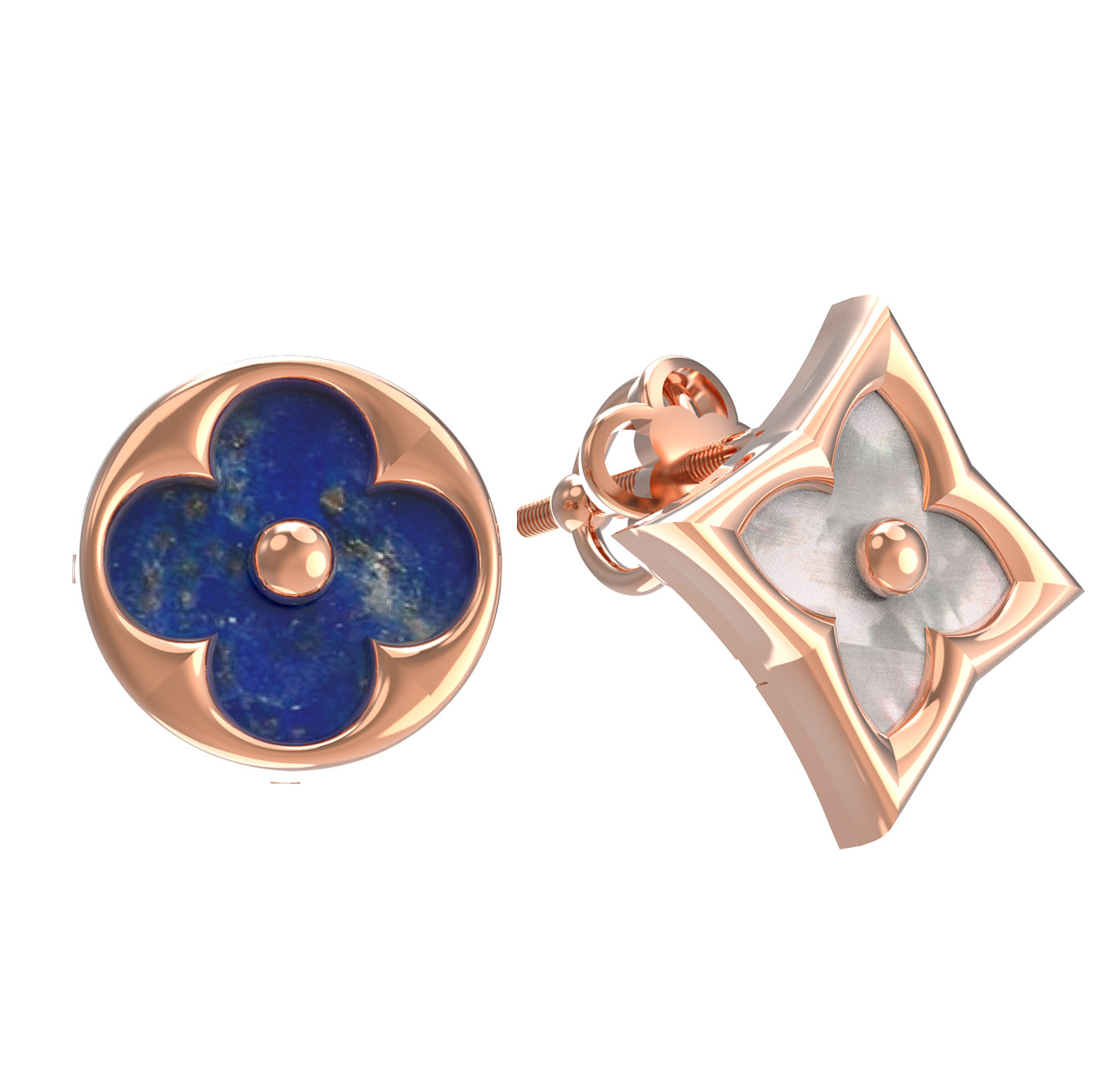 Серьги из золота c лазуритом и перламутром