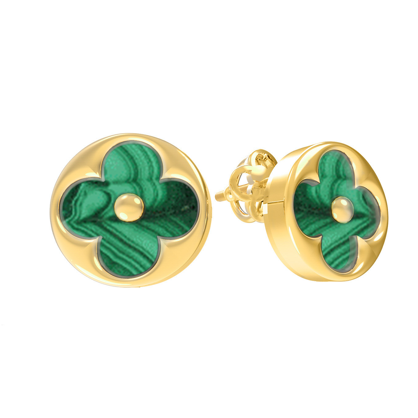 Серьги из лимонного золота c малахитом