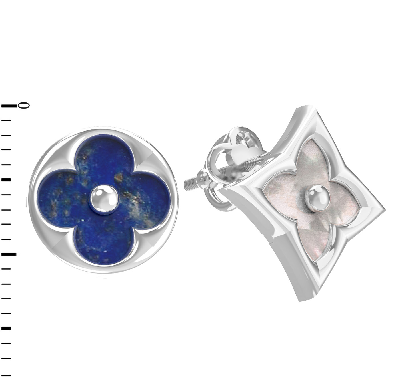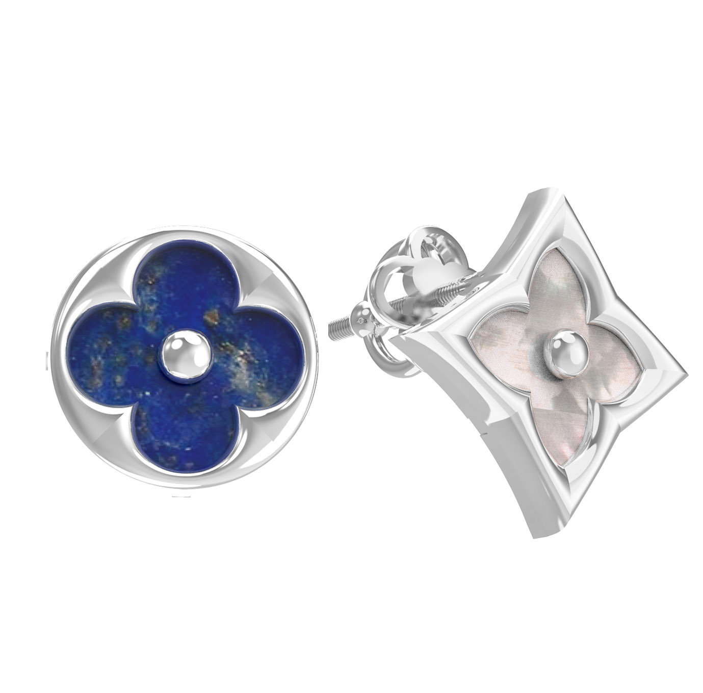 Серьги из белого золота c лазуритом и перламутром
