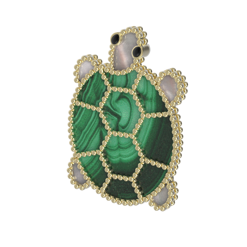 Брошь из лимонного золота c эмаль, малахитом и перламутром