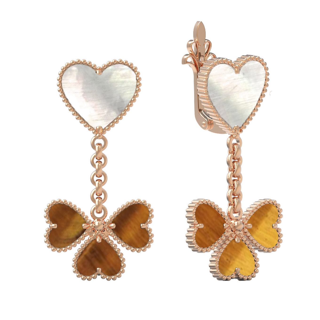 • Серьги из лимонного золота c тигровым глазом и перламутром