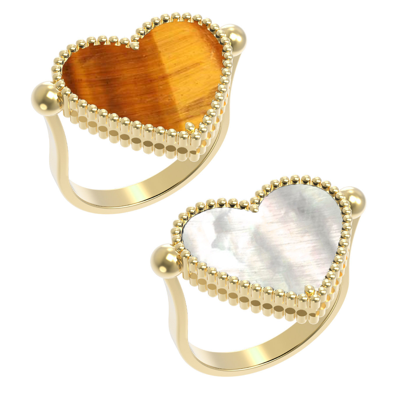 Кольцо из лимонного золота c тигровым глазом и перламутром