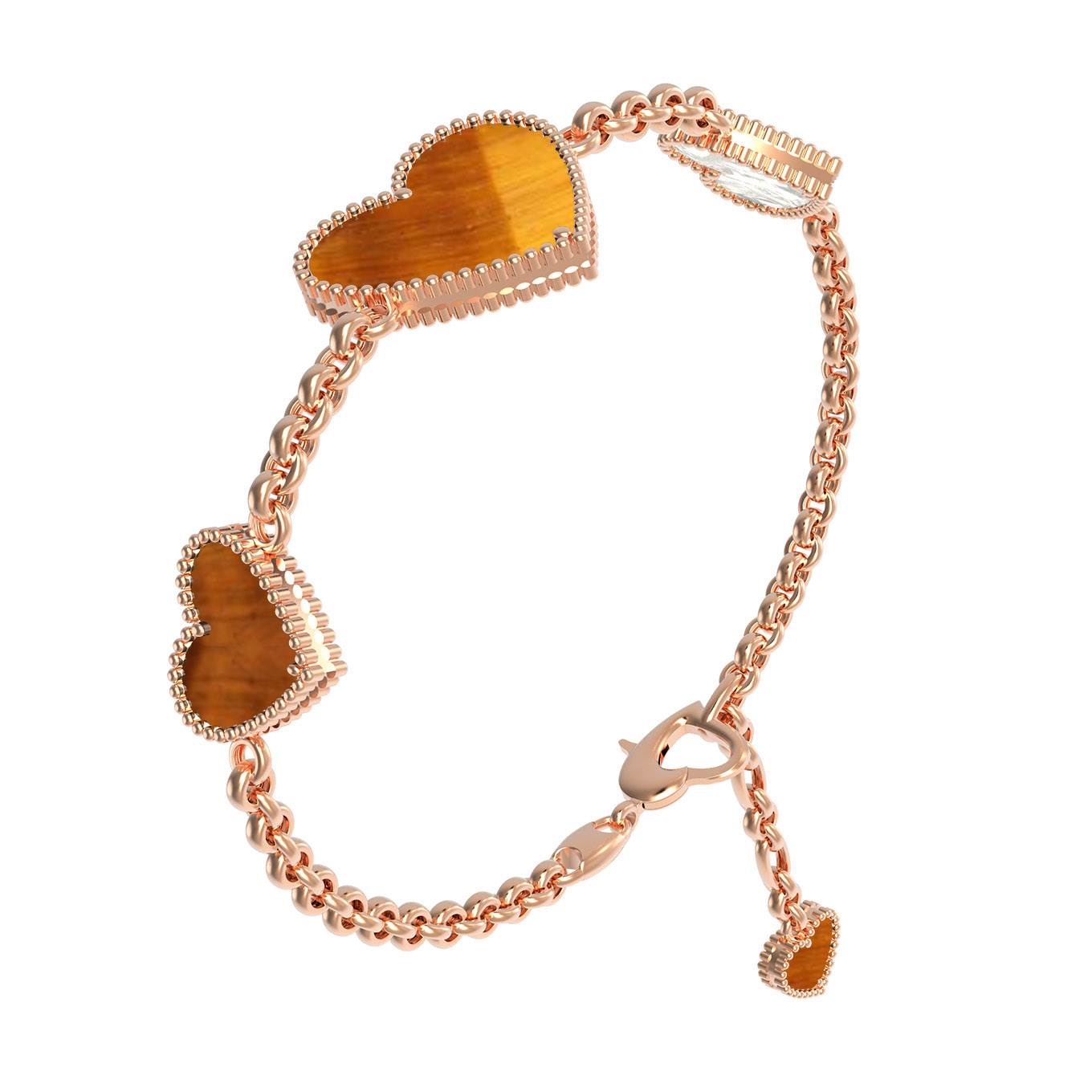 Браслет из золота c тигровым глазом и перламутром