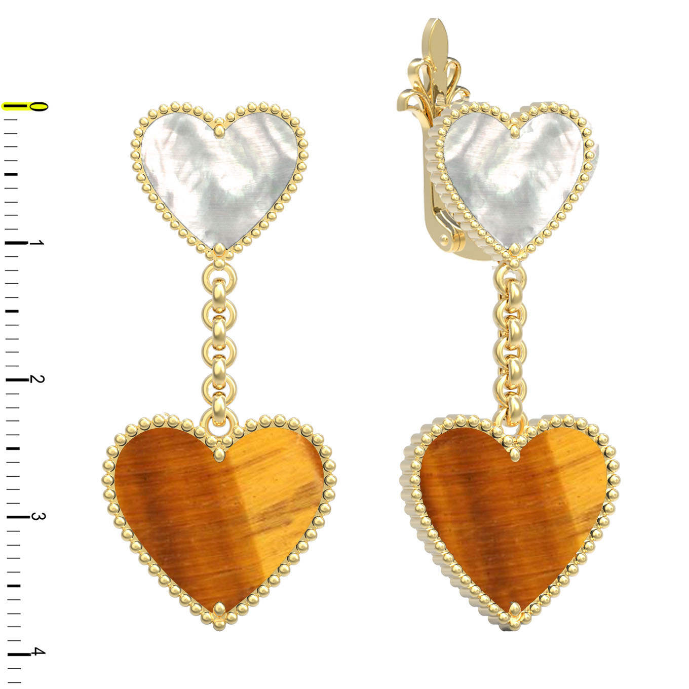 Серьги из лимонного золота c тигровым глазом и перламутром