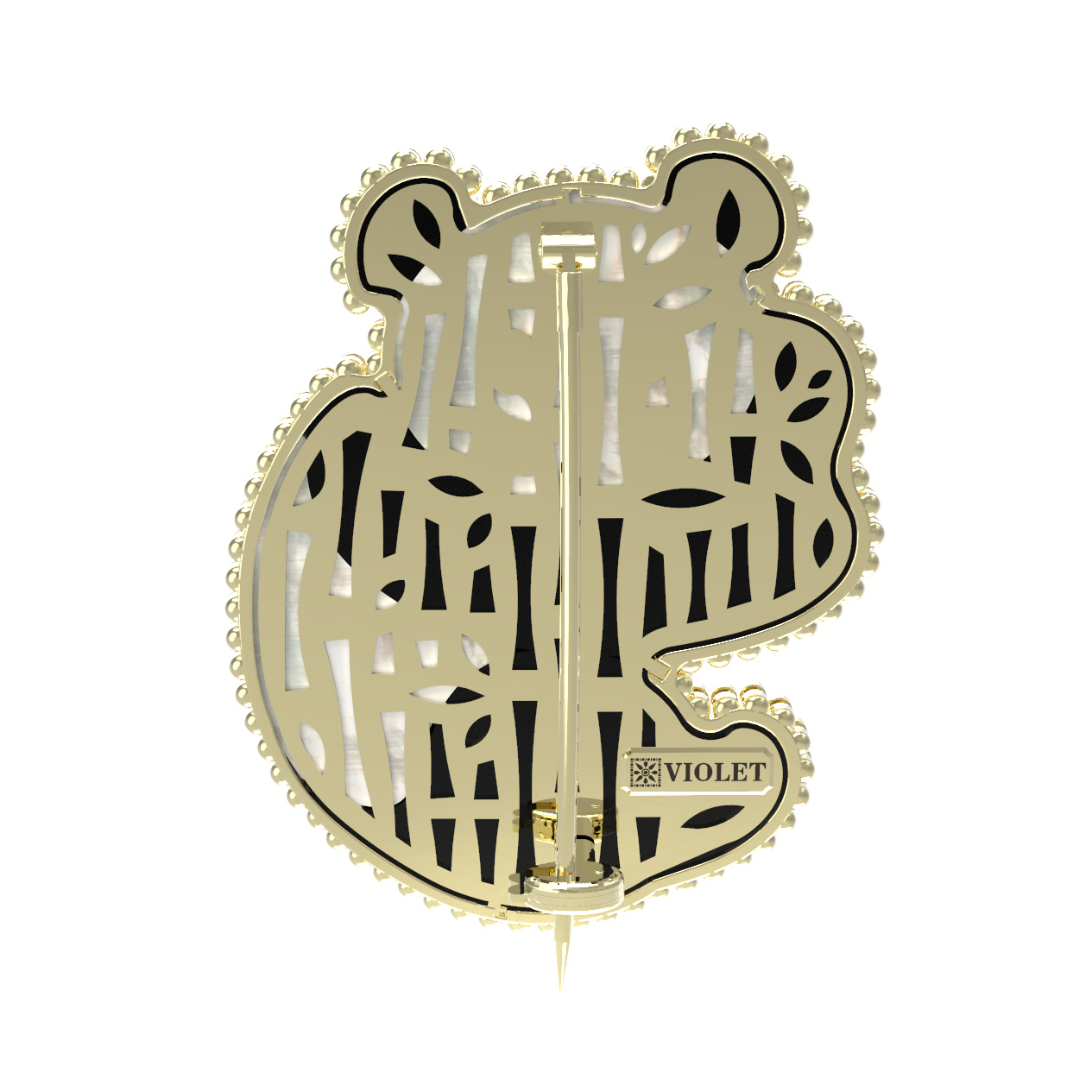 Брошь из лимонного золота c эмаль, ониксом и перламутром