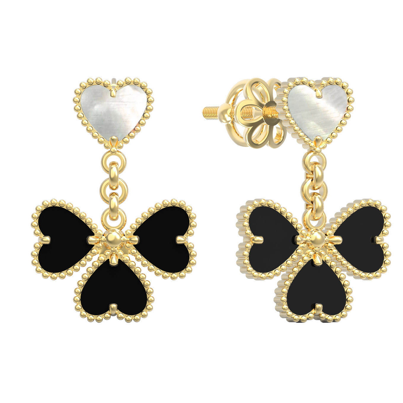 • Серьги из лимонного золота c ониксом и перламутром