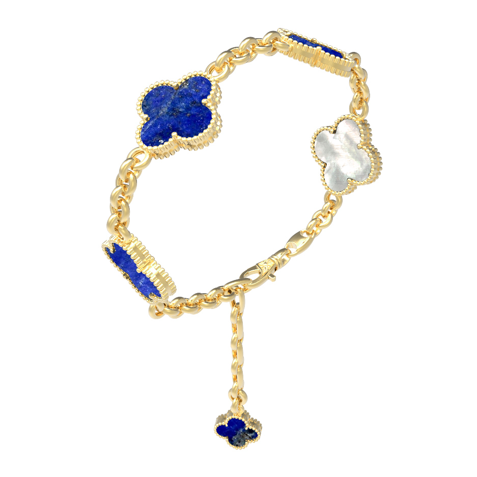 Браслет из лимонного золота c лазуритом и перламутром