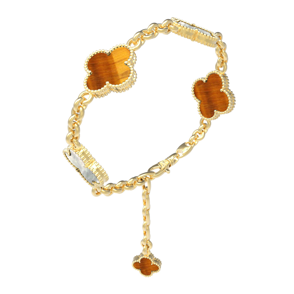 Браслет из лимонного золота c тигровым глазом и перламутром