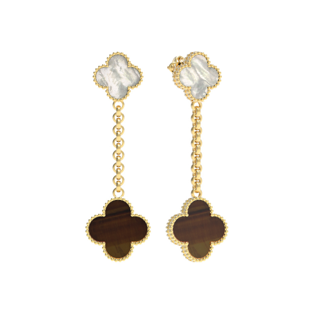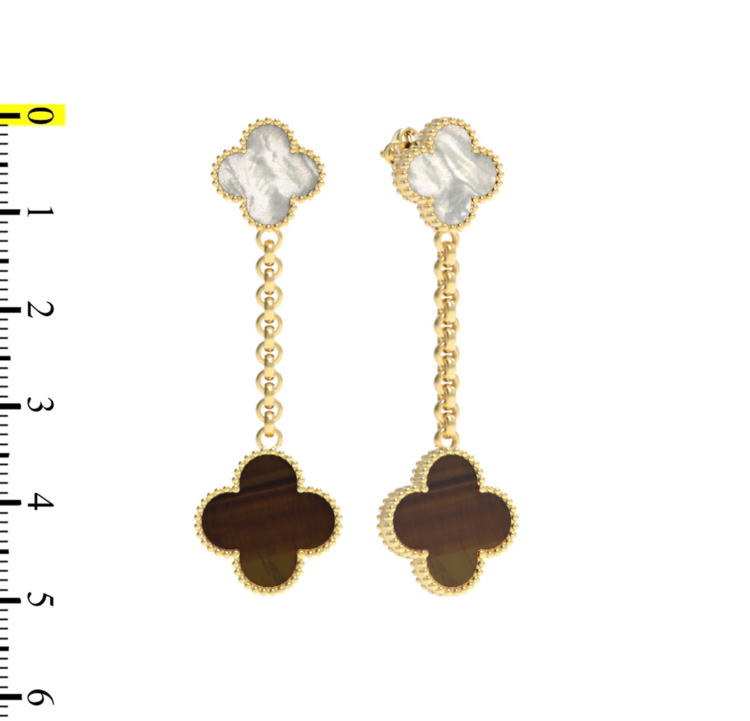 Серьги из лимонного золота c тигровым глазом и перламутром