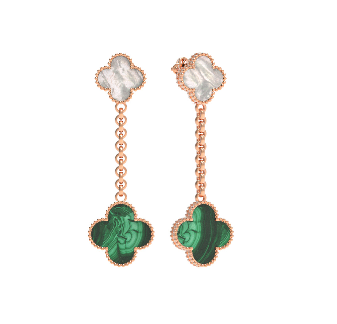 Серьги из золота c малахитом и перламутром