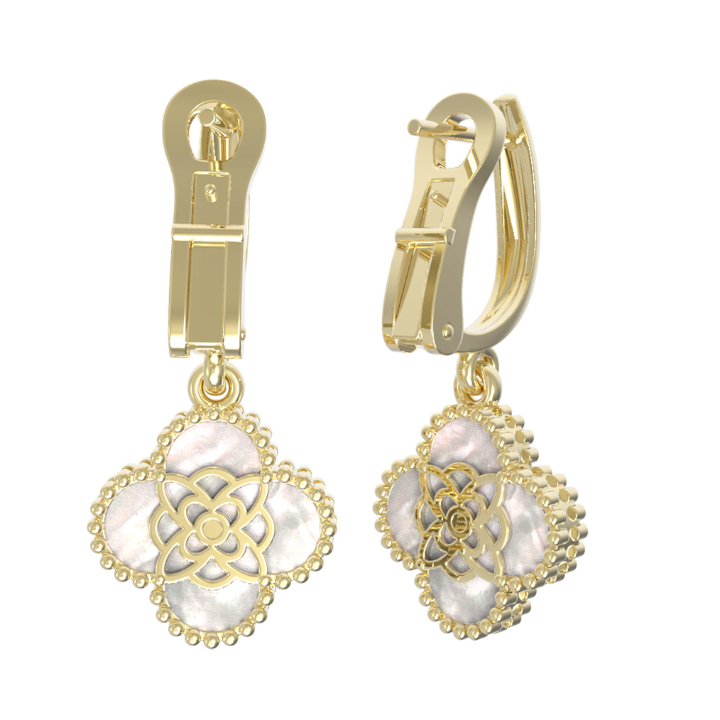 Серьги из лимонного золота c бриллиантами и перламутром