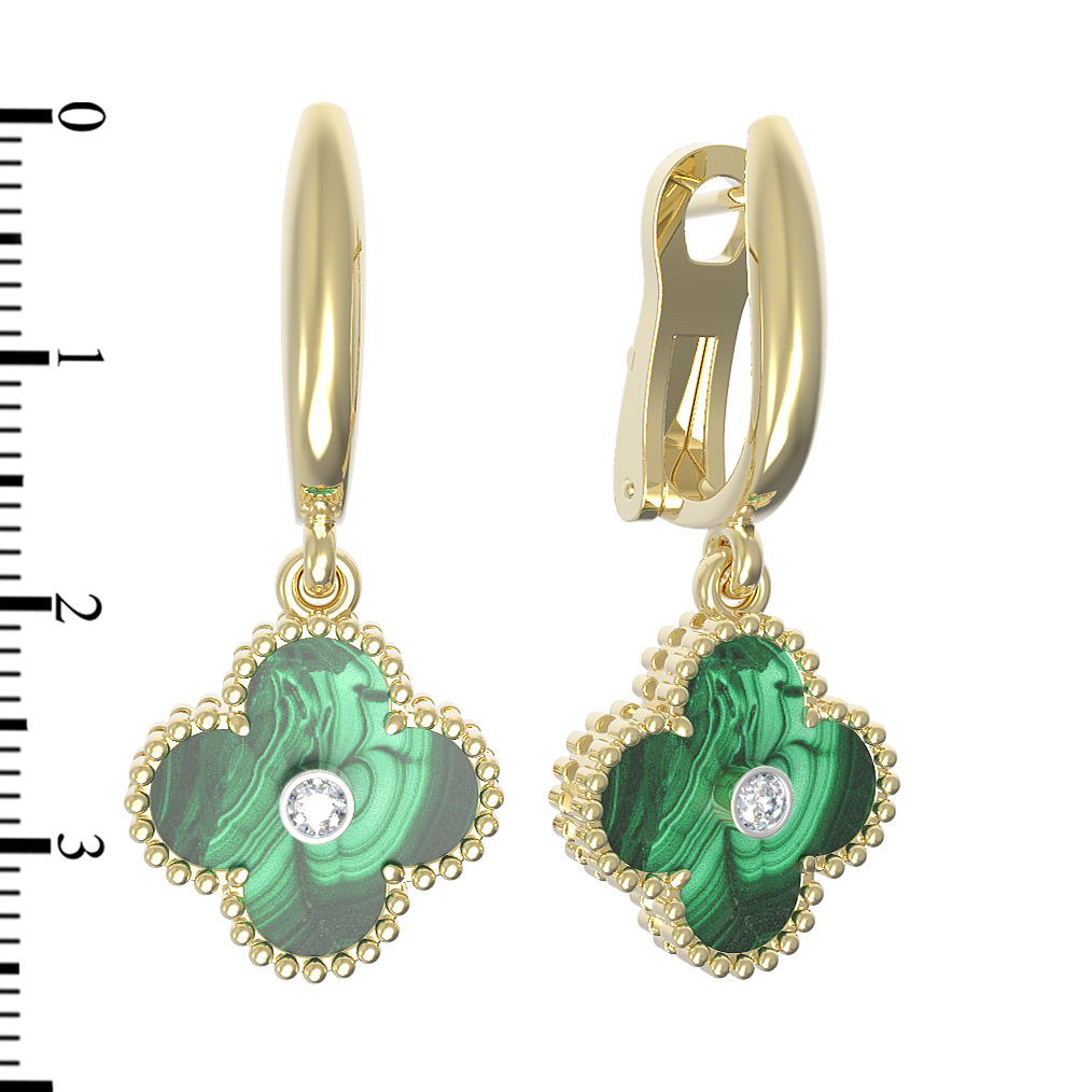 Серьги из лимонного золота c бриллиантами и малахитом