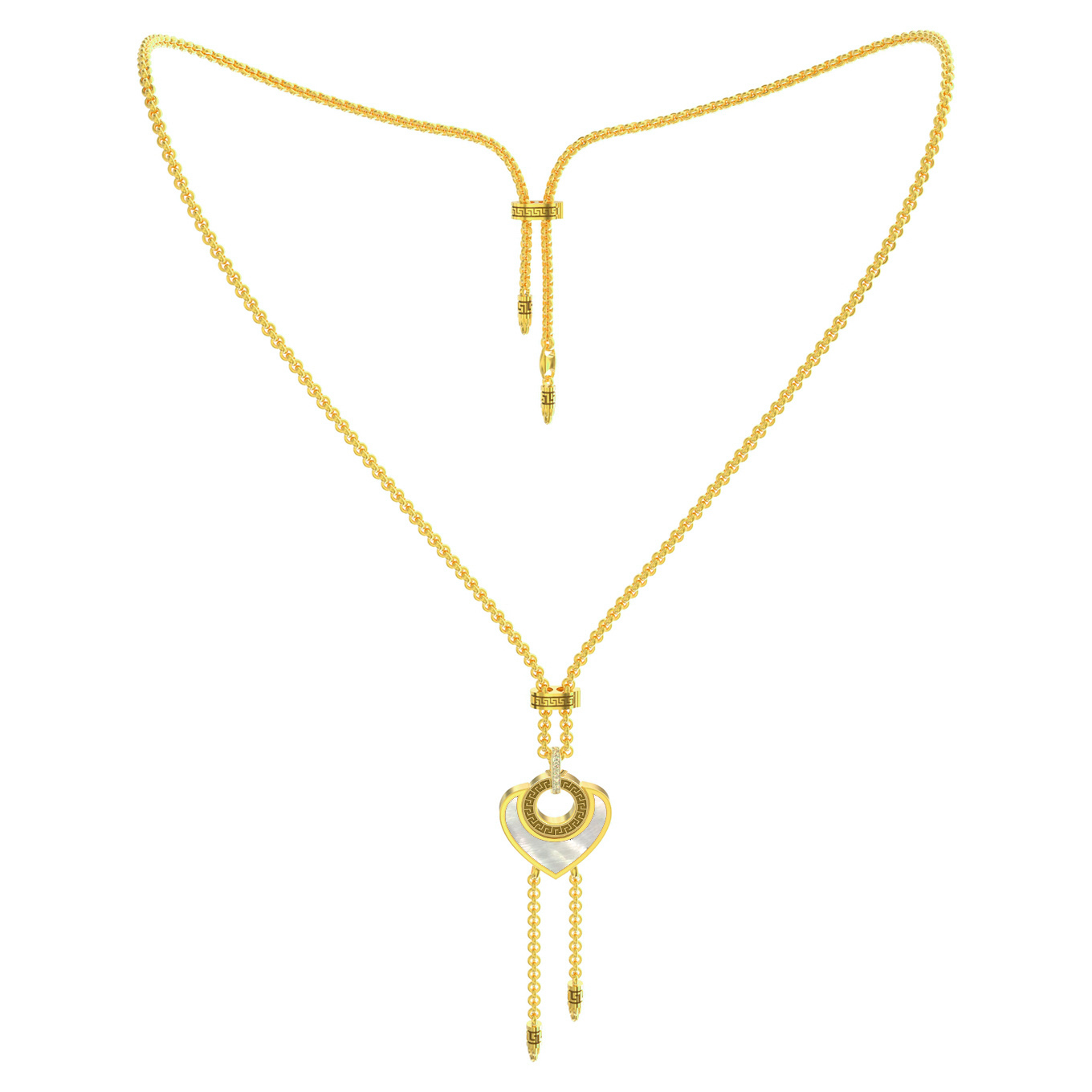 Колье из лимонного золота c фианитом, малахитом и перламутром