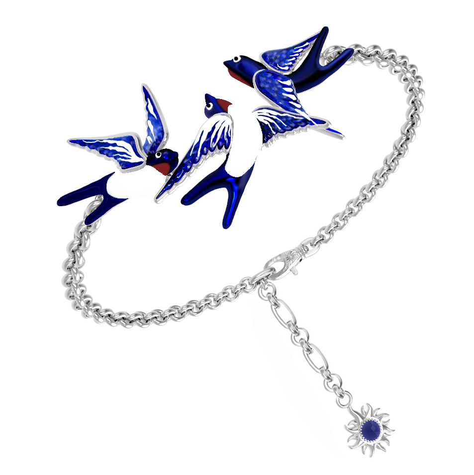 Браслет из белого золота c эмаль и сапфиром