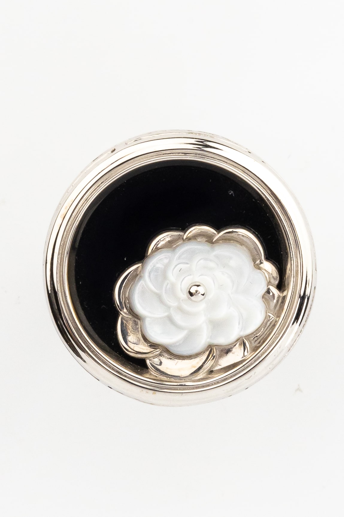 Кольцо из белого золота c ониксом и перламутром