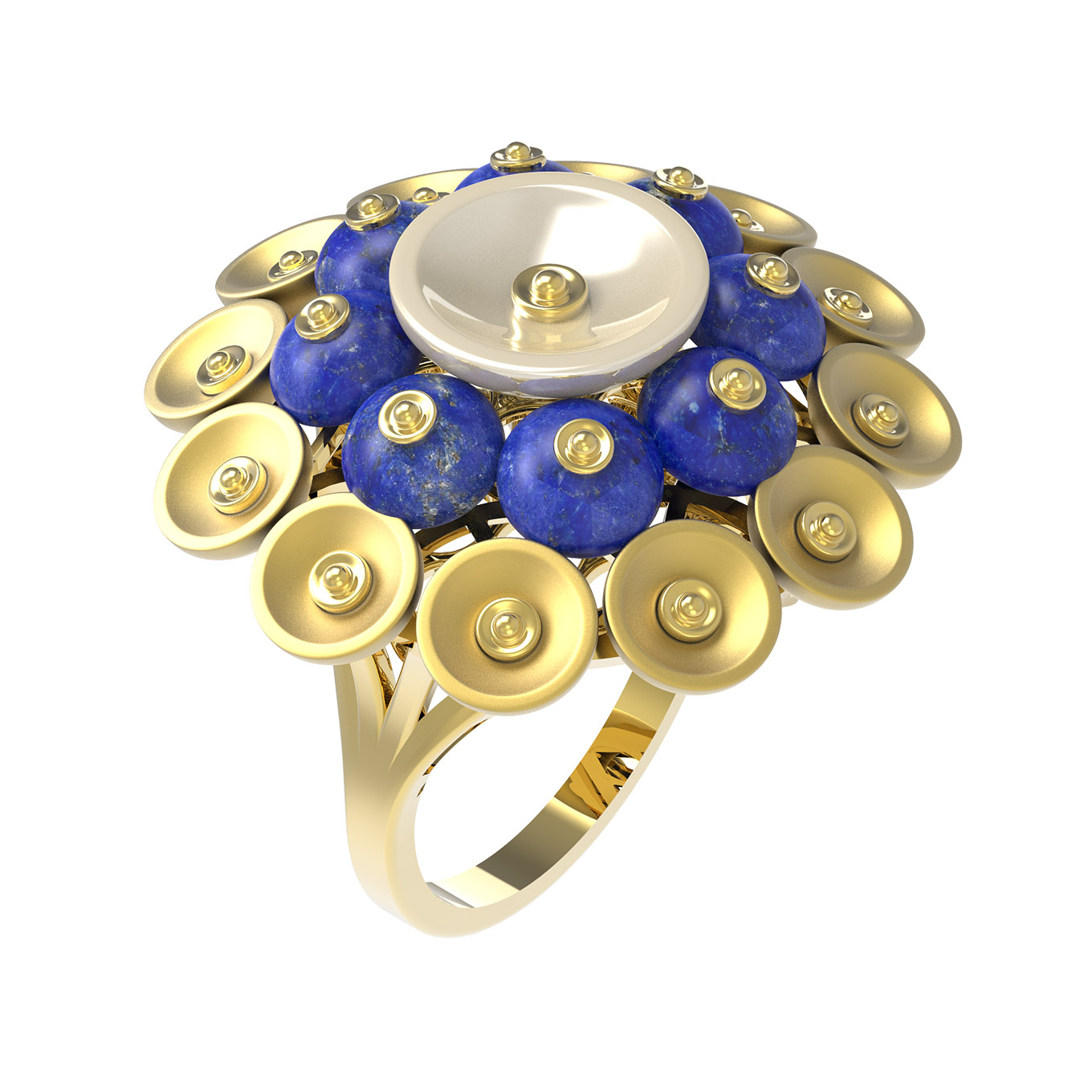 Кольцо из лимонного золота c лазуритом и перламутром