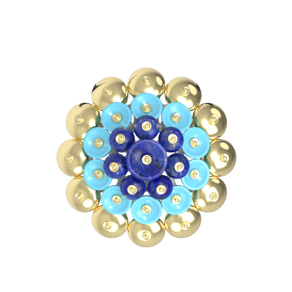 Подвеска из лимонного золота c бирюзой и лазуритом