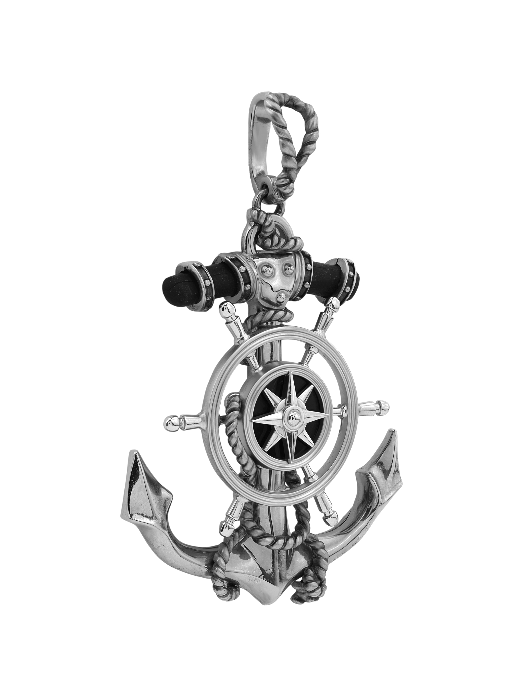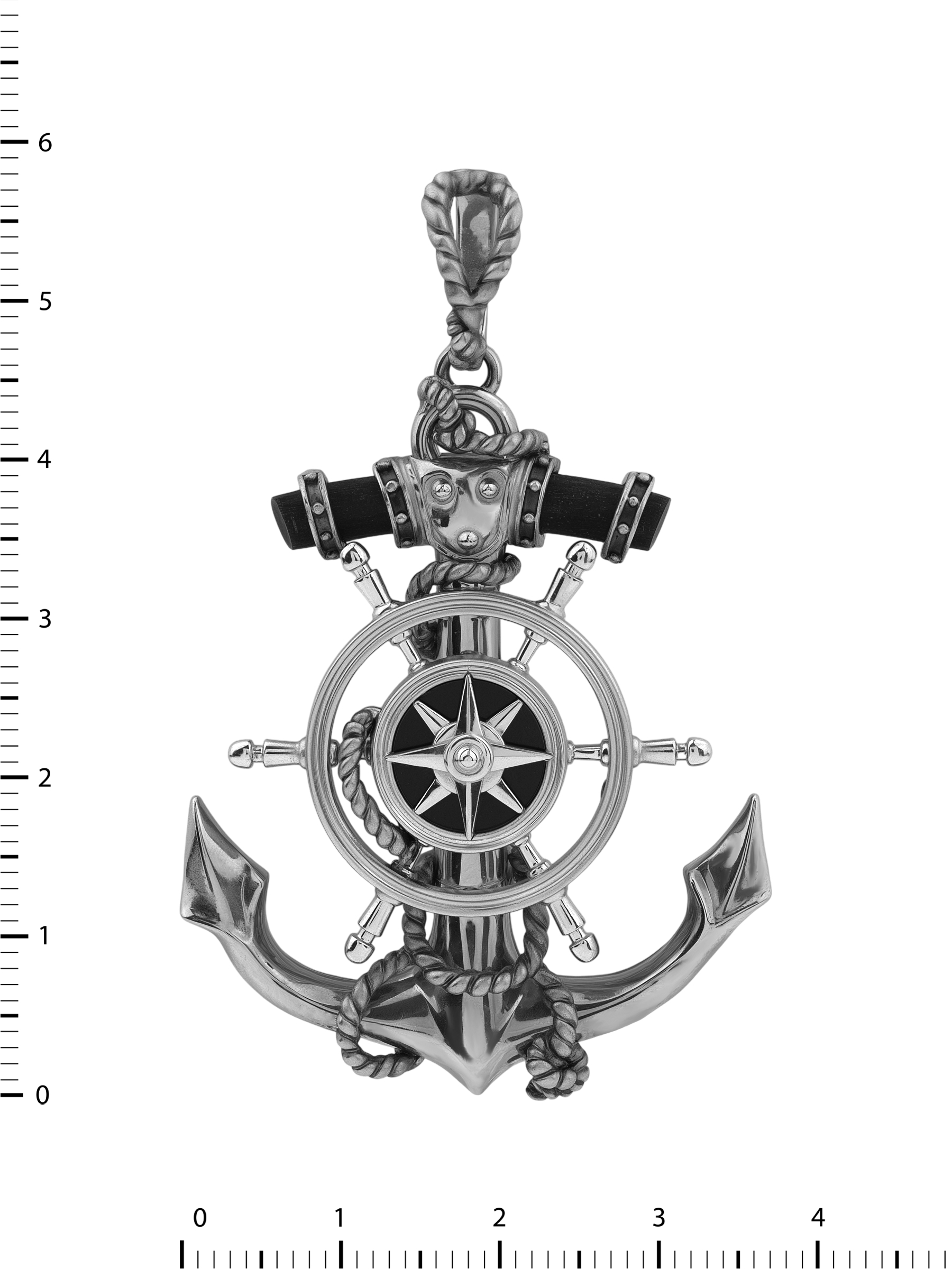 Подвеска из белого золота c ониксом и эбеновым деревом