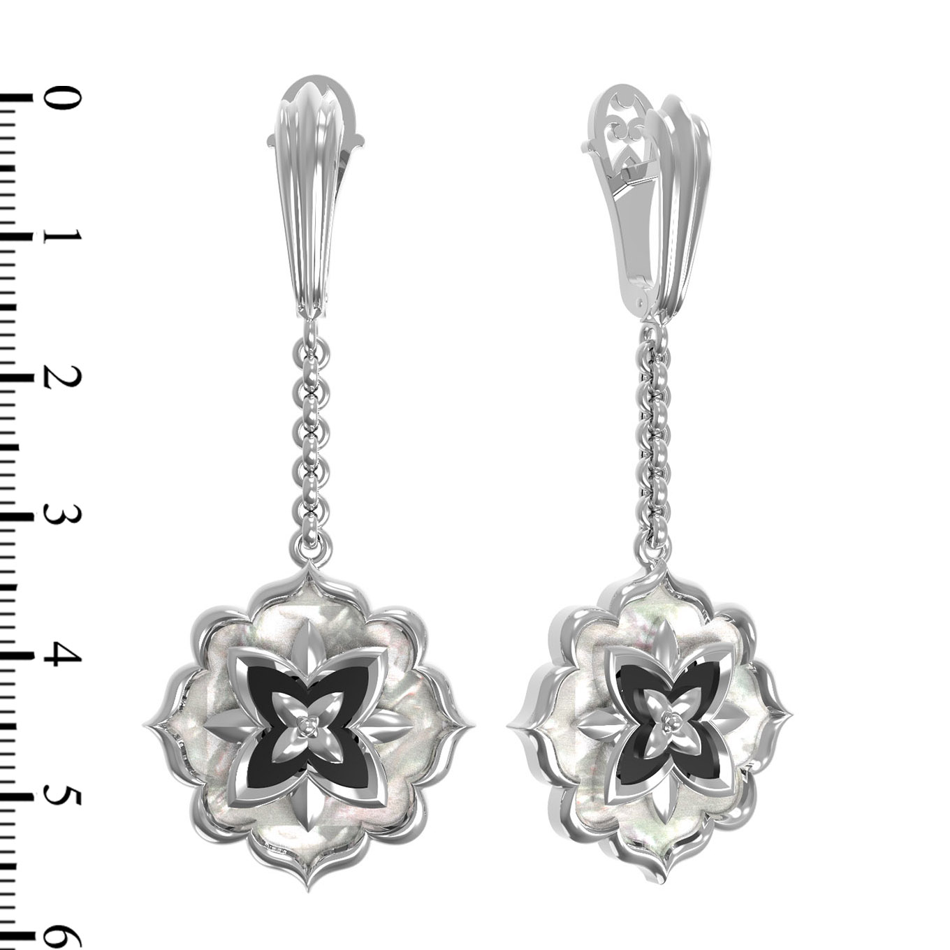 Серьги из белого золота c ониксом и перламутром
