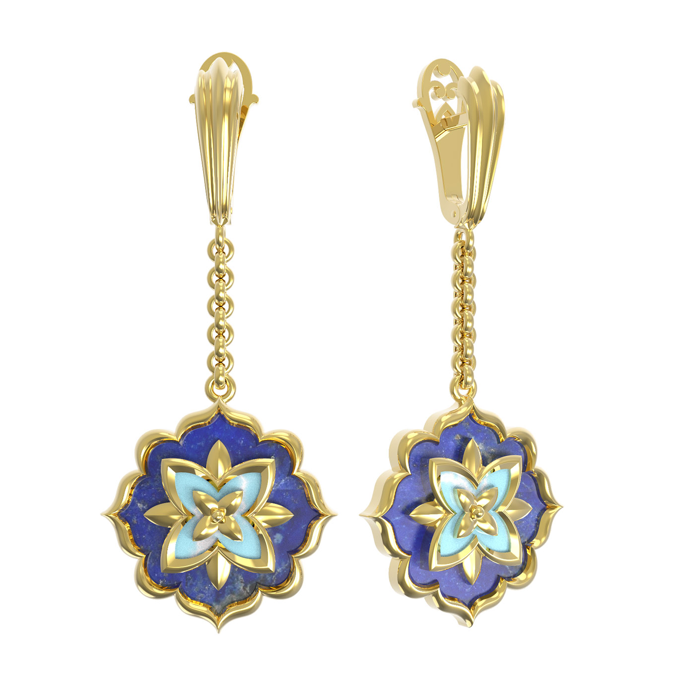 Серьги из лимонного золота c бирюзой и лазуритом