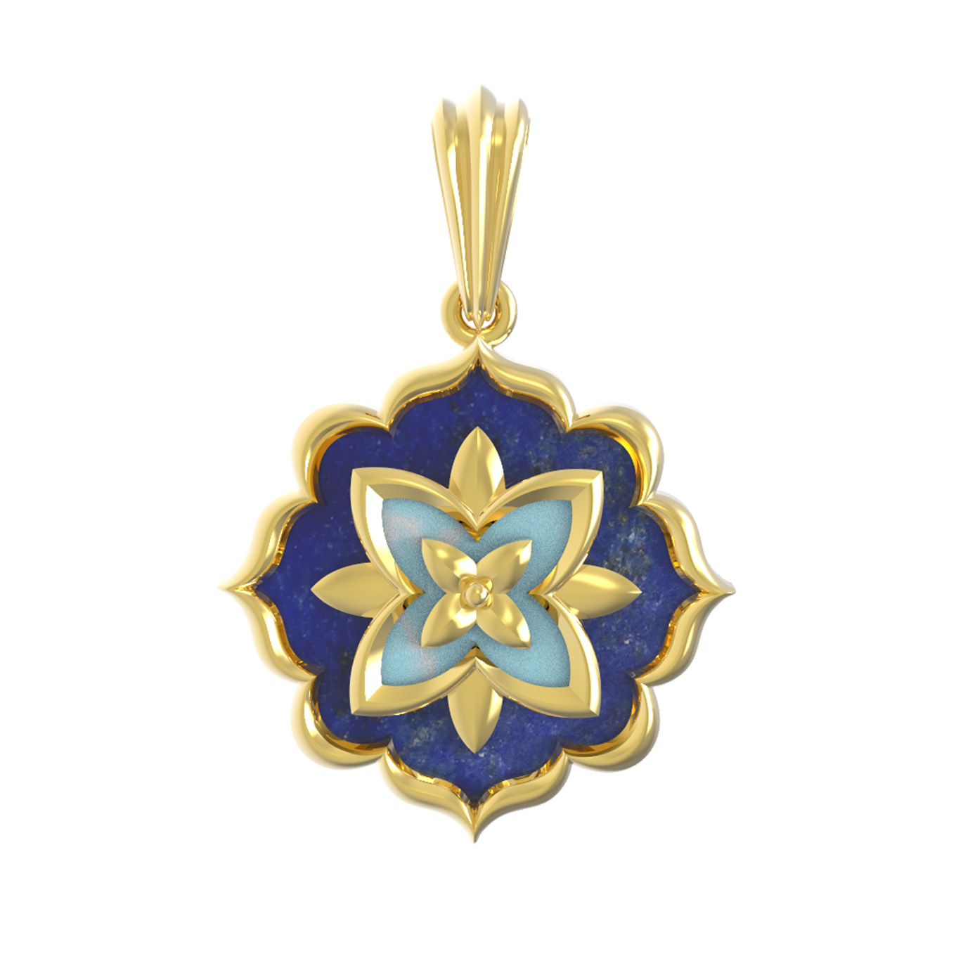 Подвеска из лимонного золота c бирюзой и лазуритом