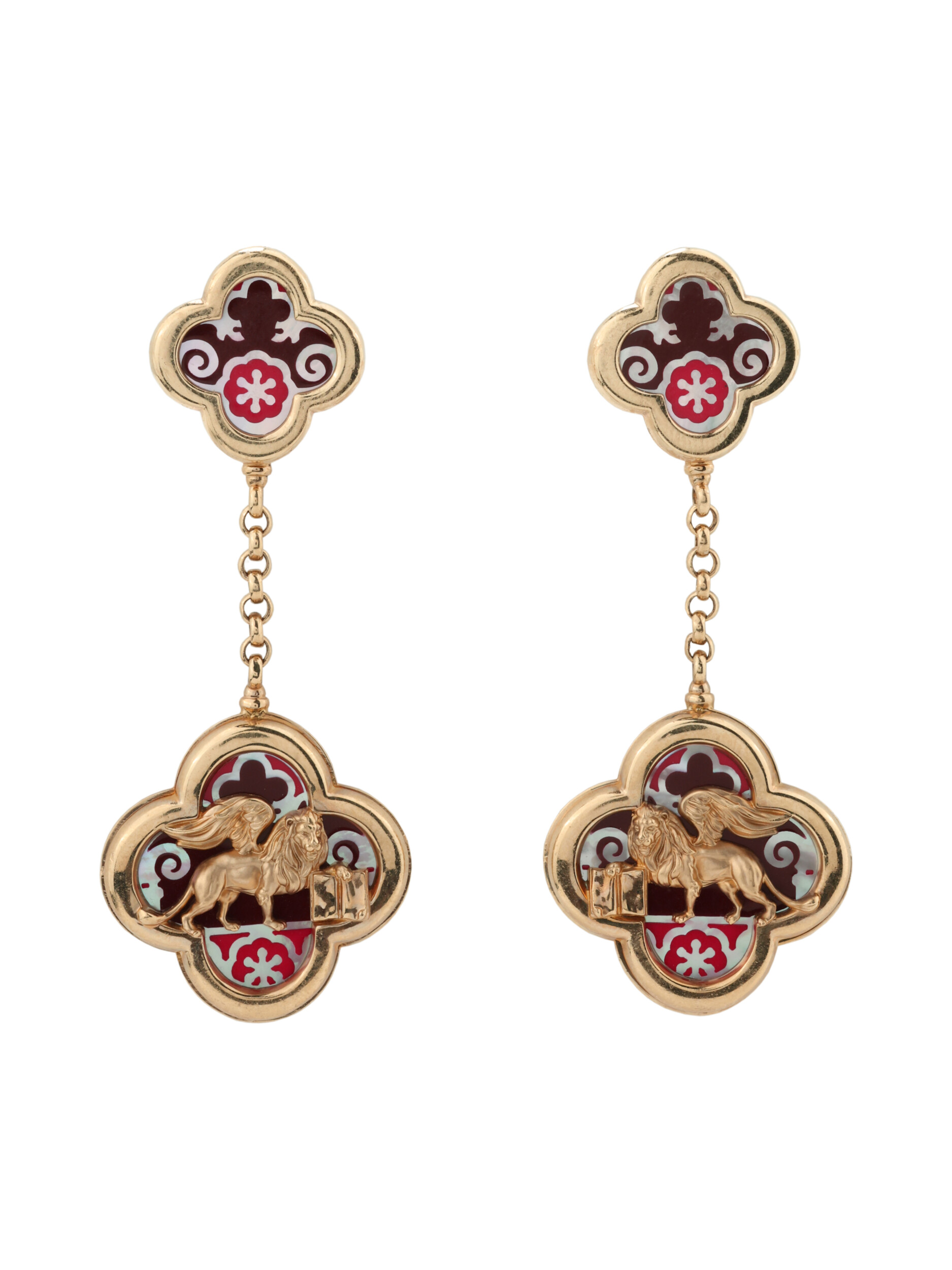 Серьги из золота c эмаль и перламутром