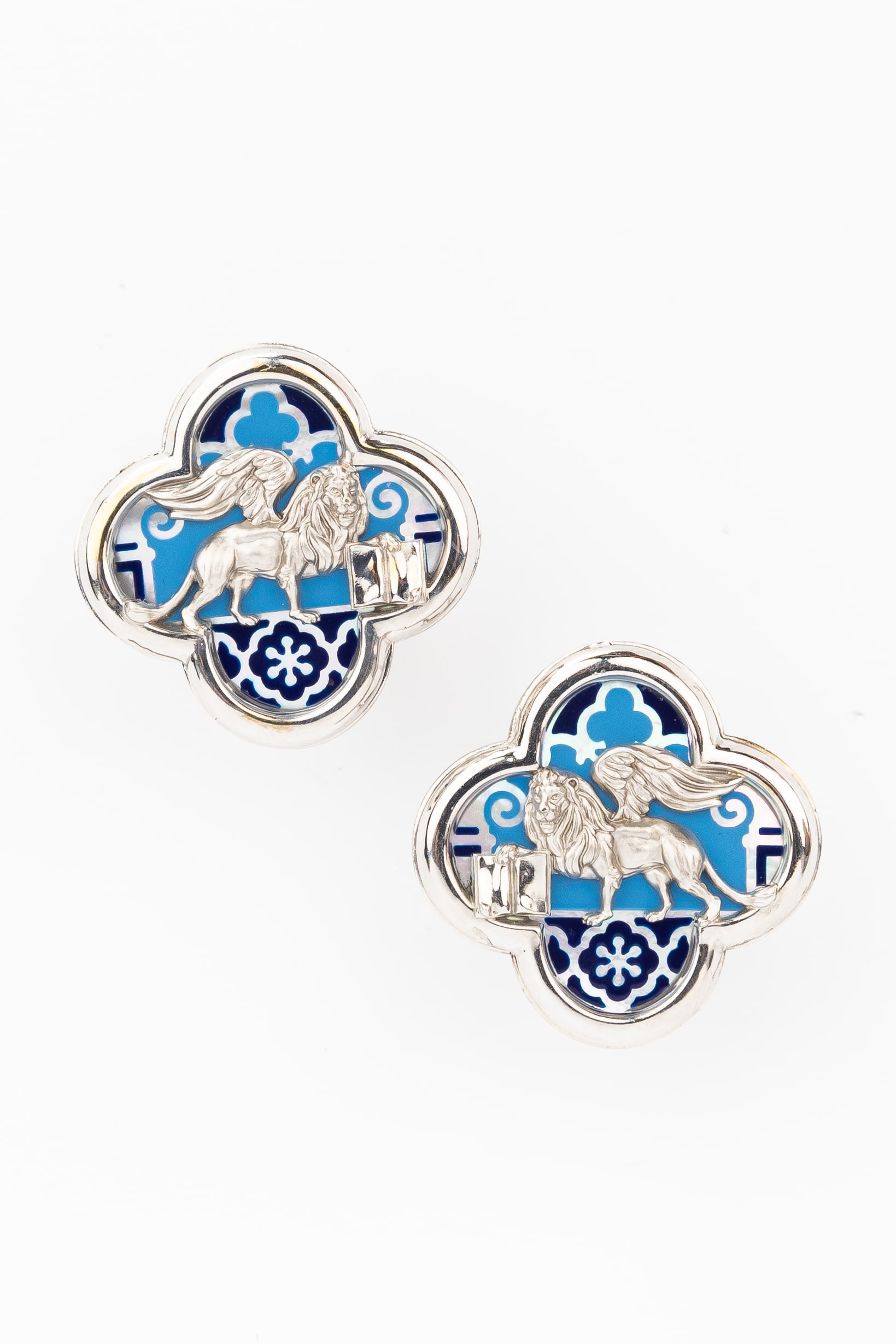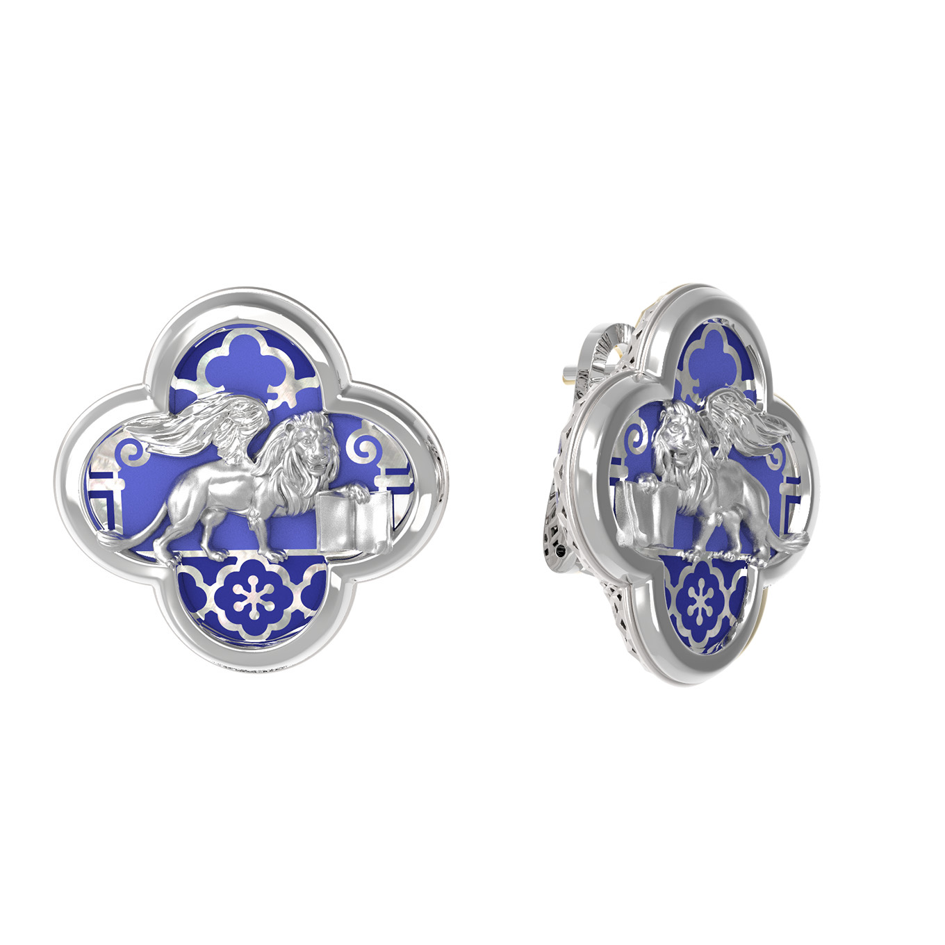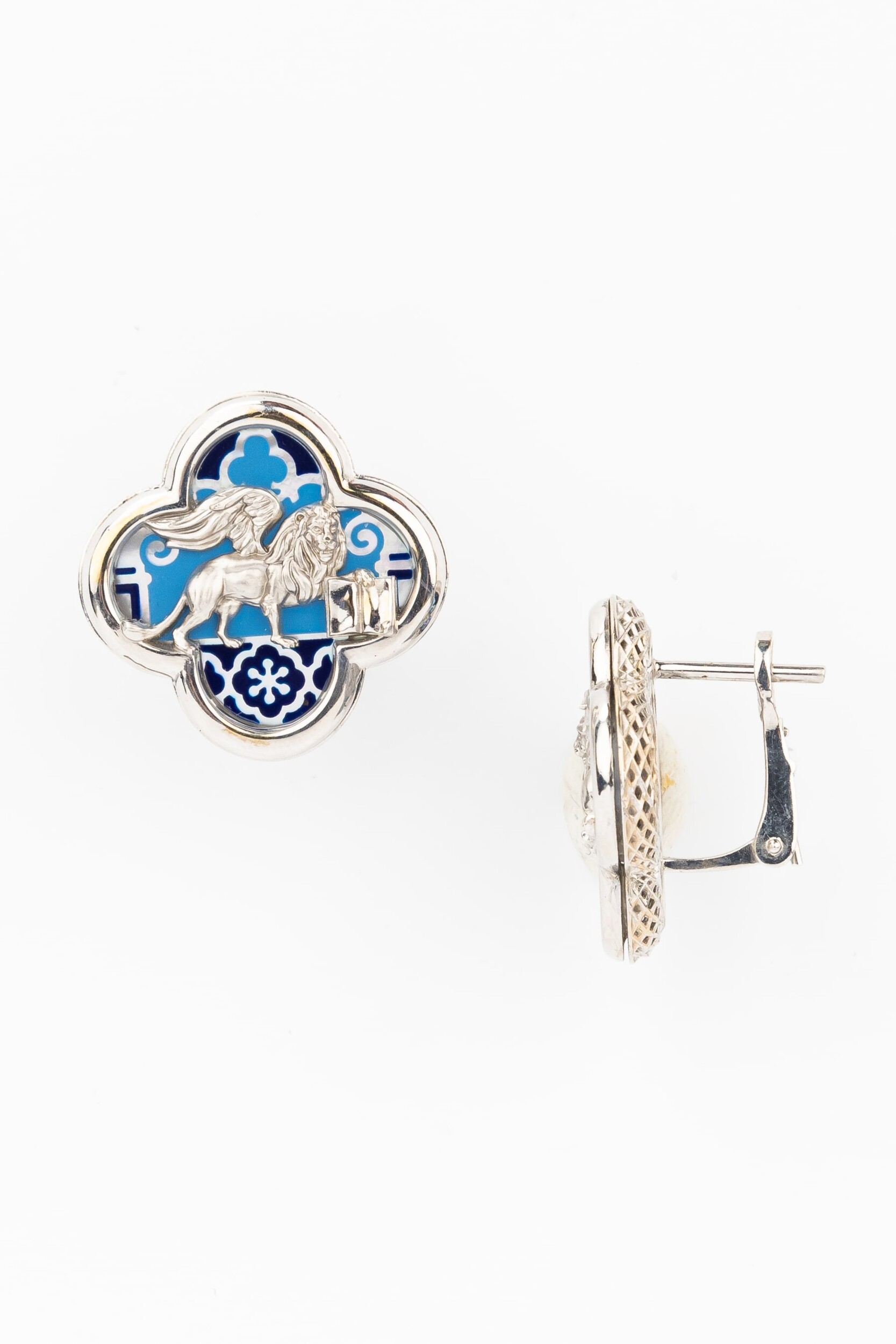 Серьги из белого золота c эмаль и перламутром