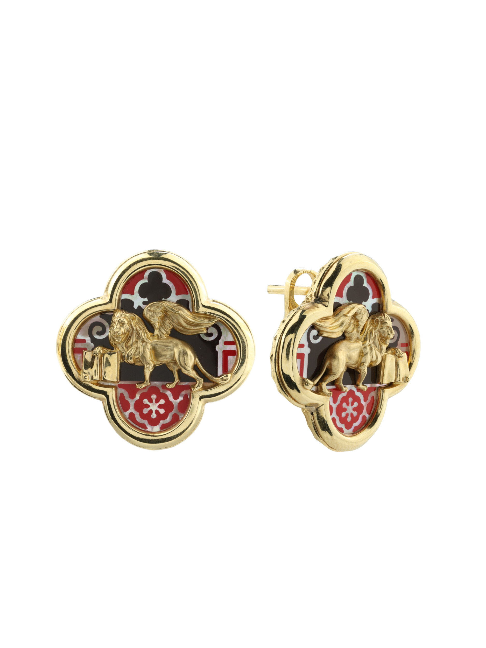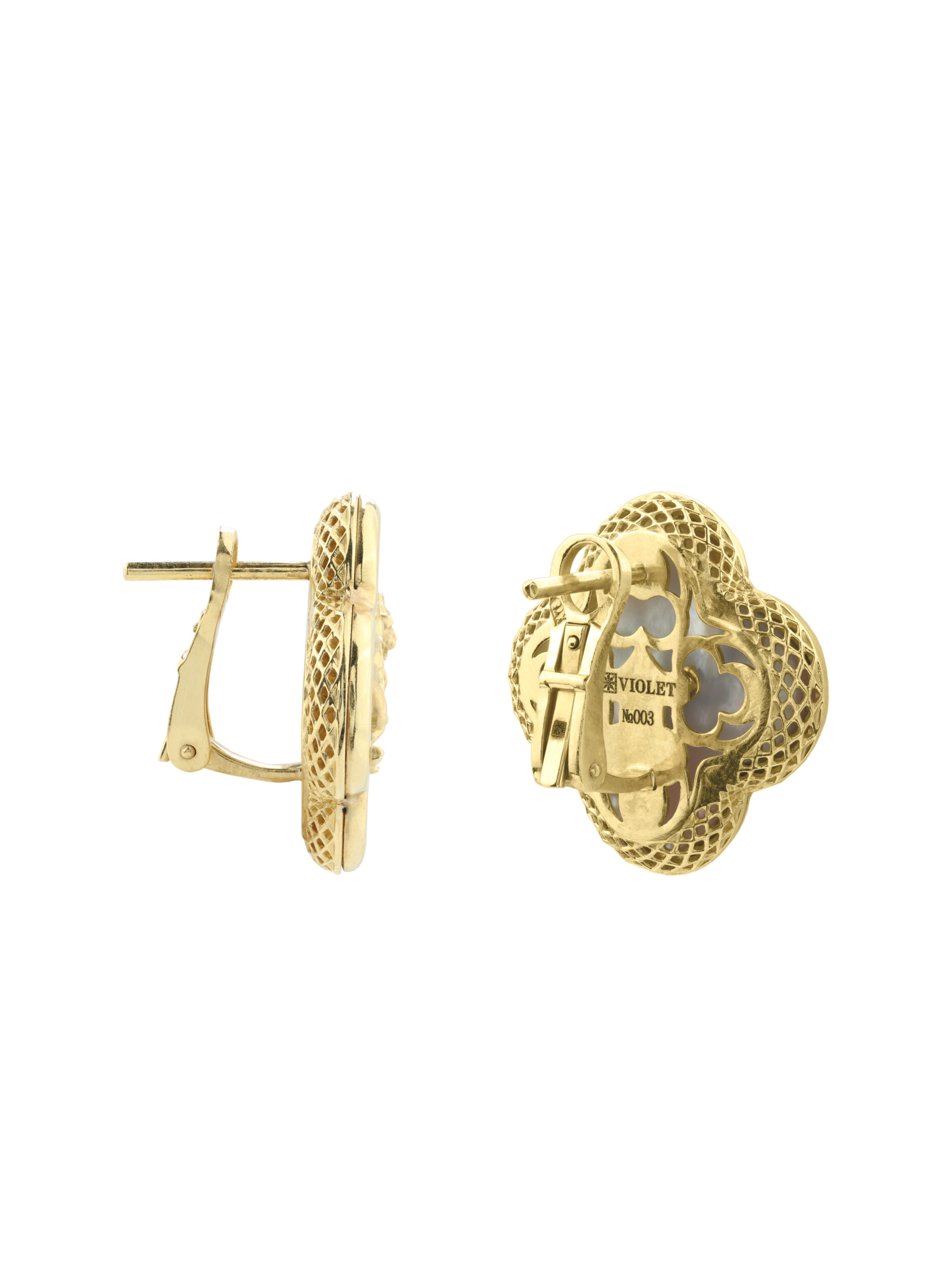 Серьги из лимонного золота c эмаль и перламутром