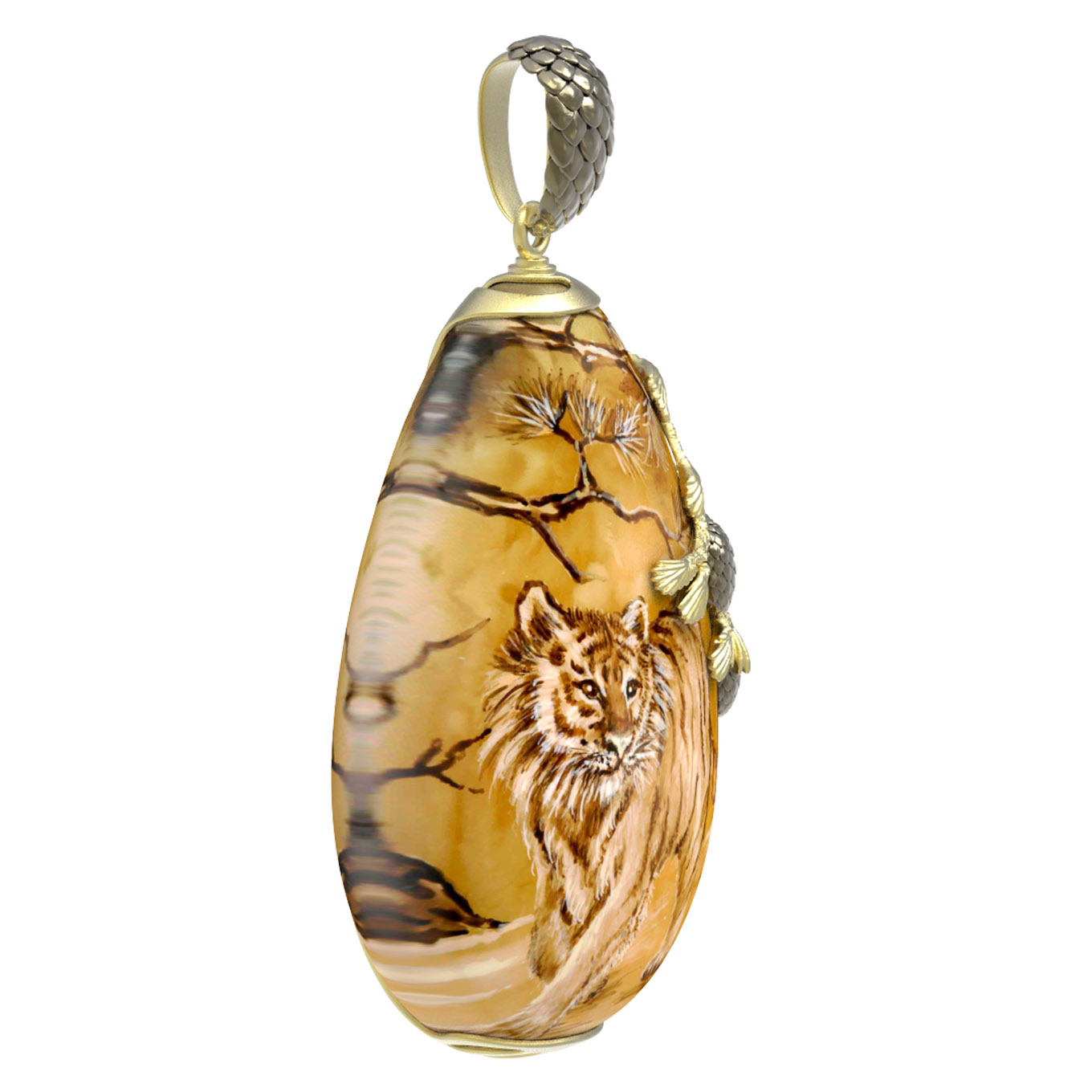 Подвеска из лимонного золота c росписным янтарём