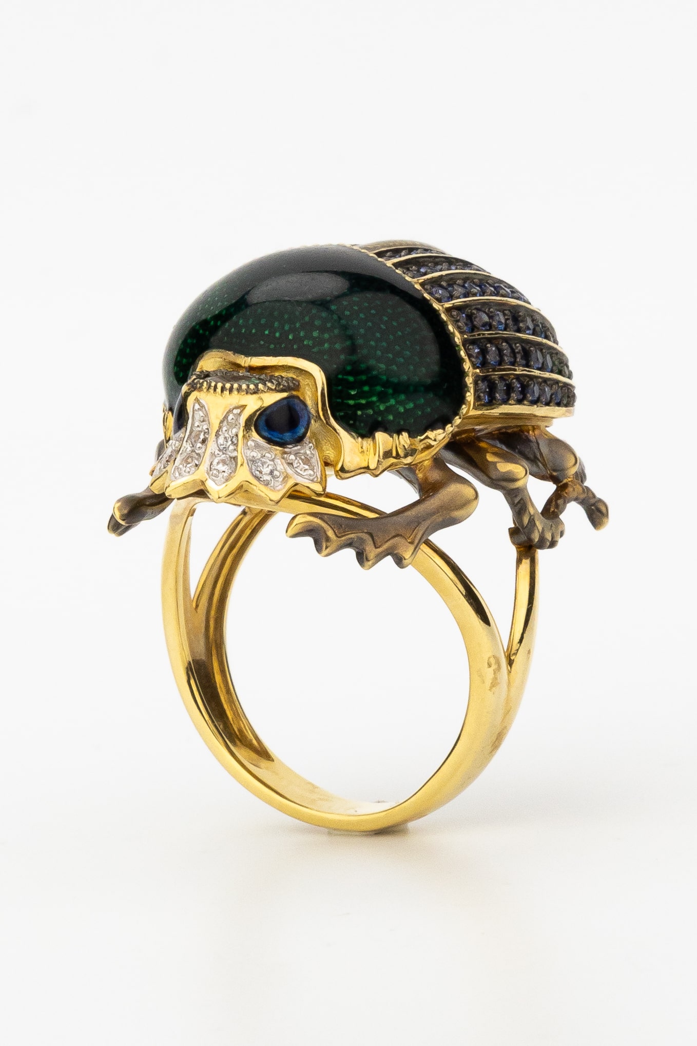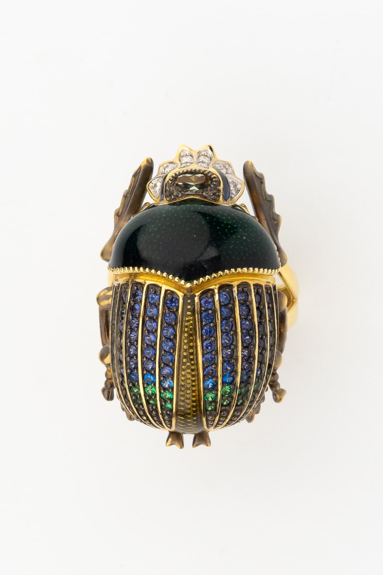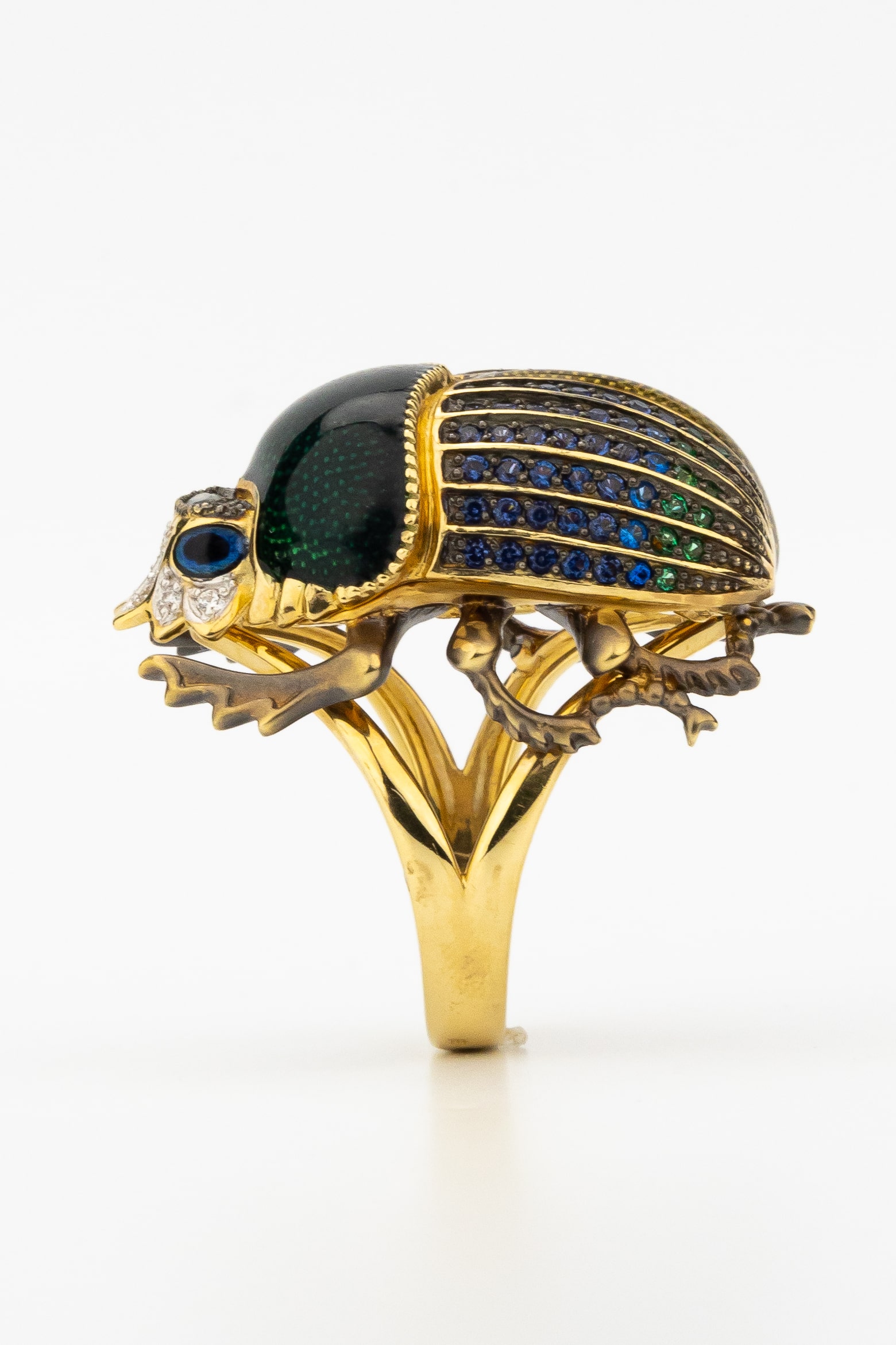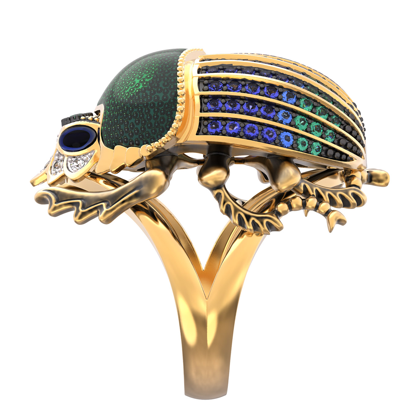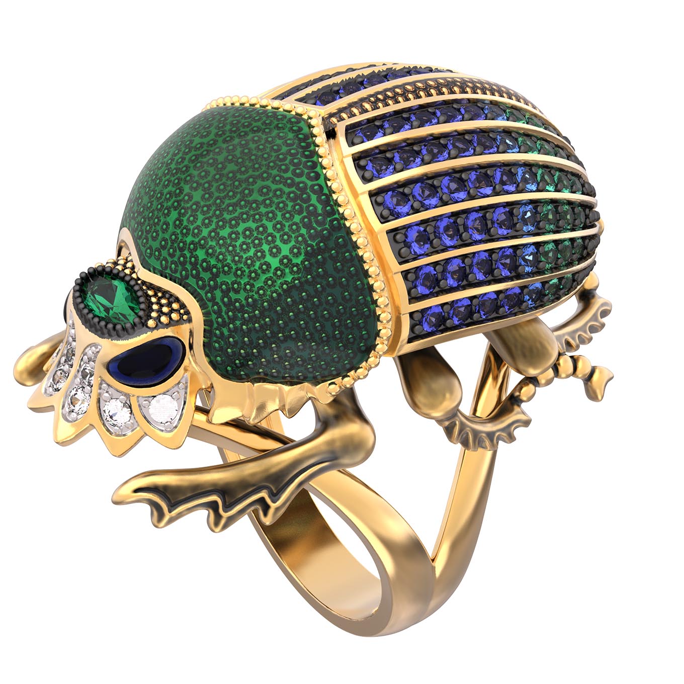 Кольцо из лимонного золота c эмаль, фианитом и турмалином