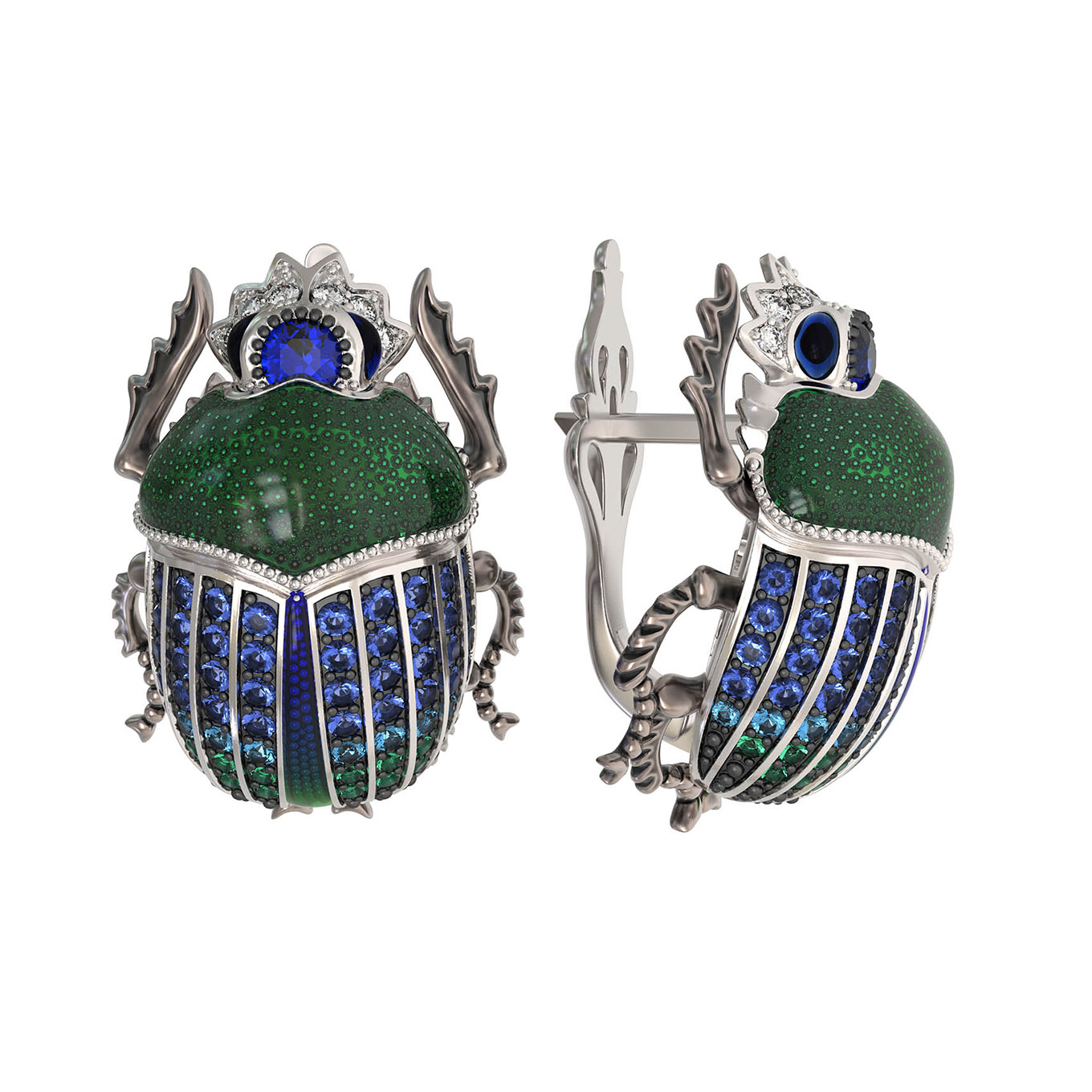 Серьги из белого золота c эмаль, фианитом и сапфиром