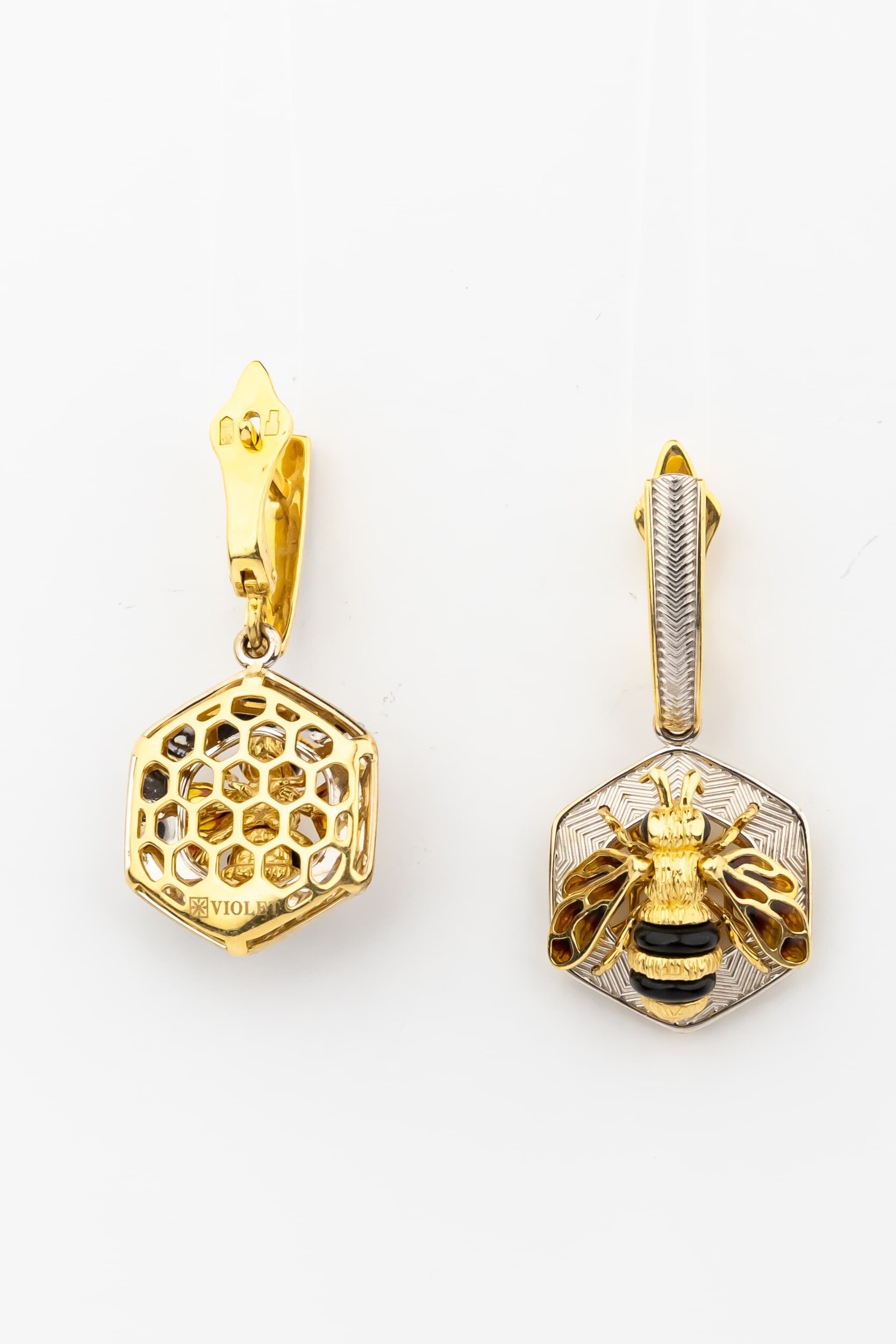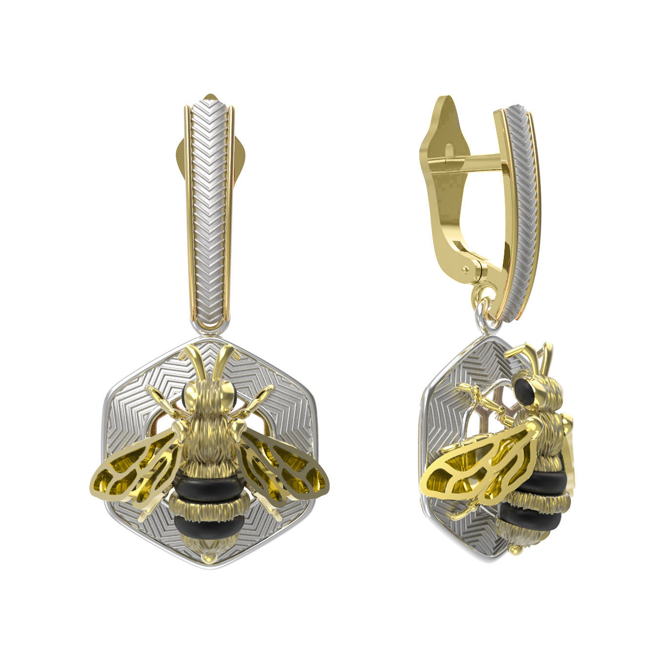 Серьги из лимонного золота c эмаль, ониксом и эмалью