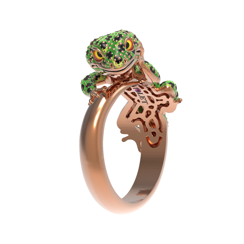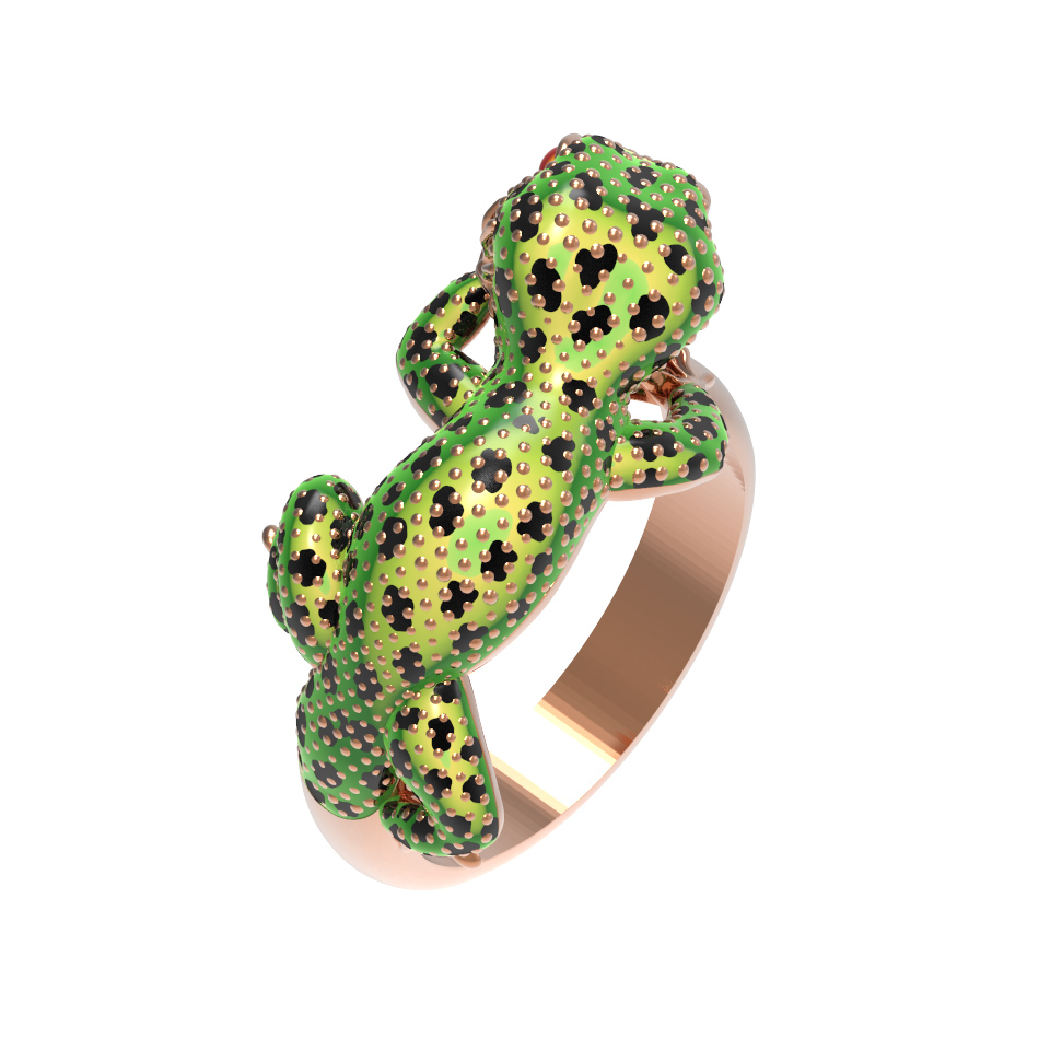 Кольцо из золота c эмаль и рубином