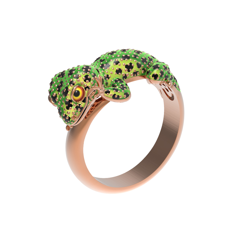 Кольцо из золота c эмаль и рубином