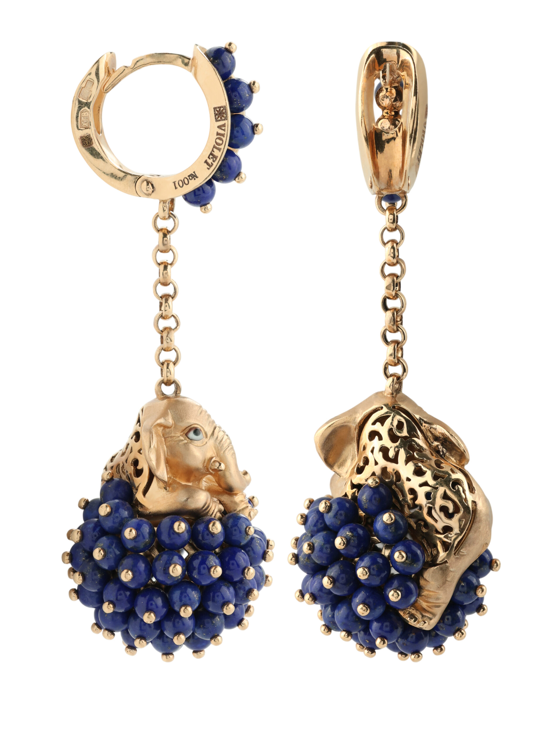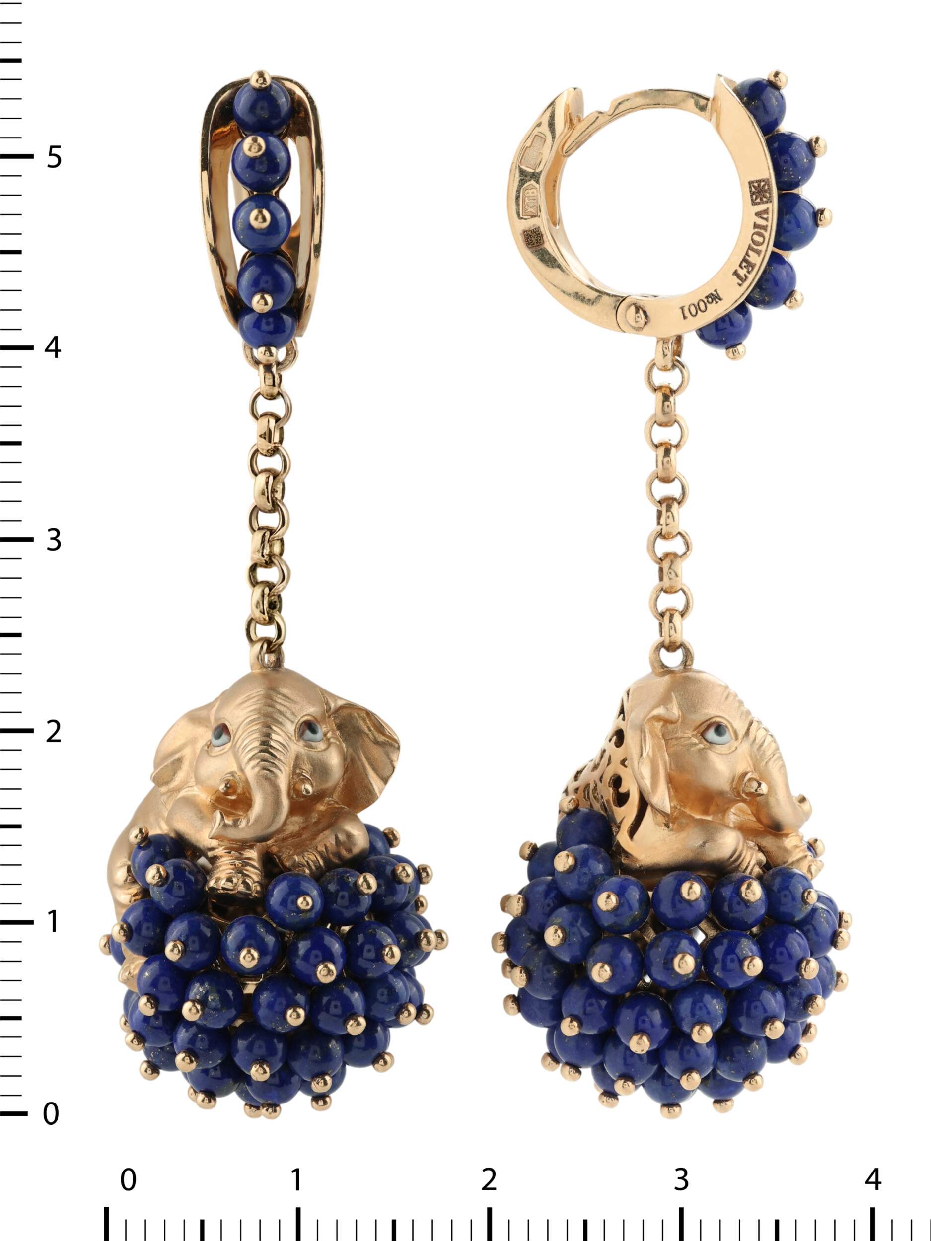 Серьги из золота c эмаль и лазуритом