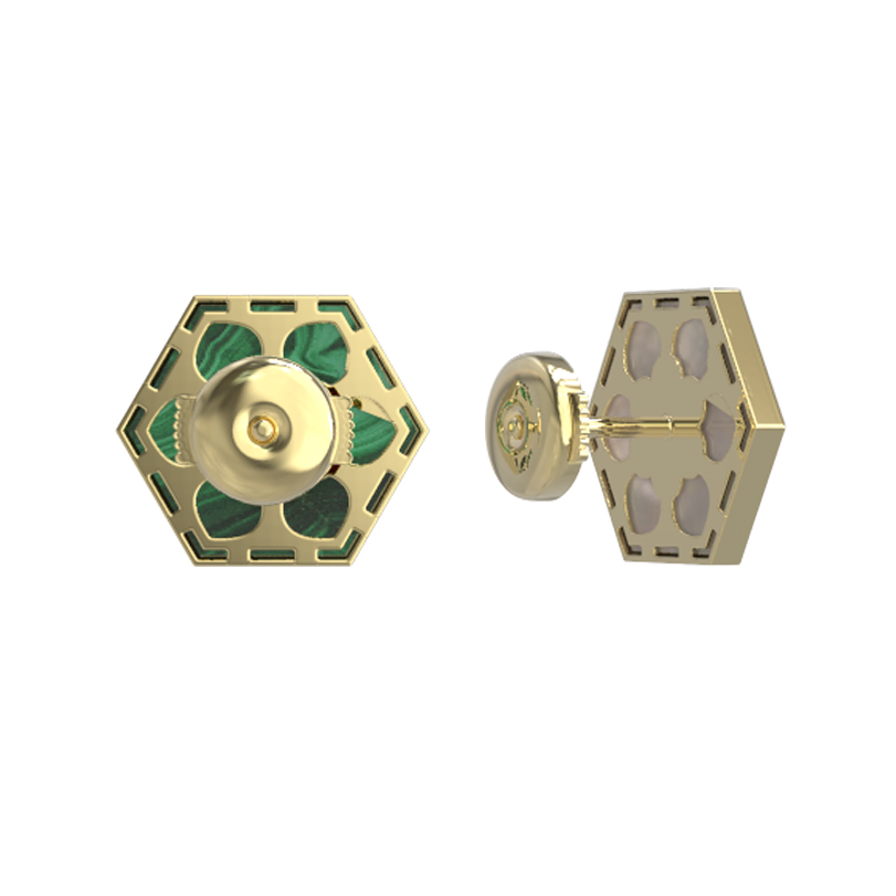 Серьги из лимонного золота c малахитом и перламутром