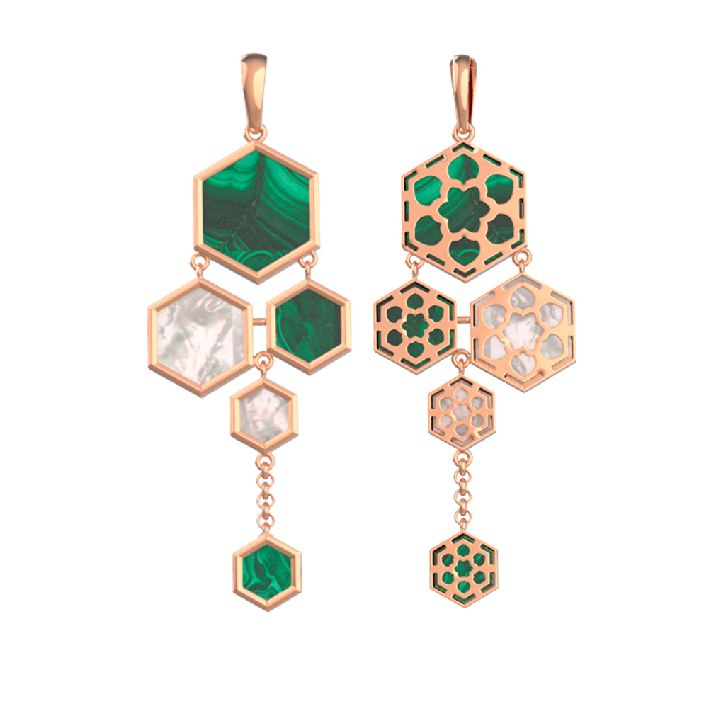 Подвеска из золота c малахитом и перламутром