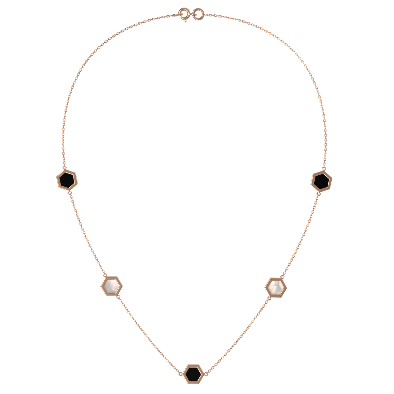 Колье из золота c ониксом и перламутром