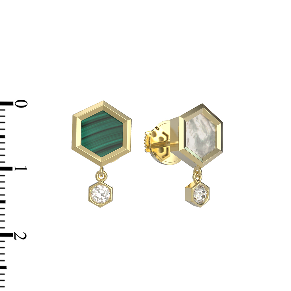 Серьги из лимонного золота c бриллиантами, малахитом и перламутром