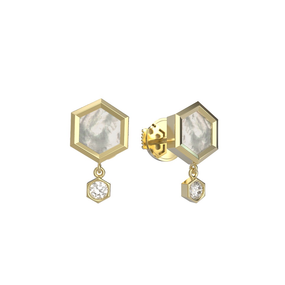 Серьги из лимонного золота c бриллиантами и перламутром