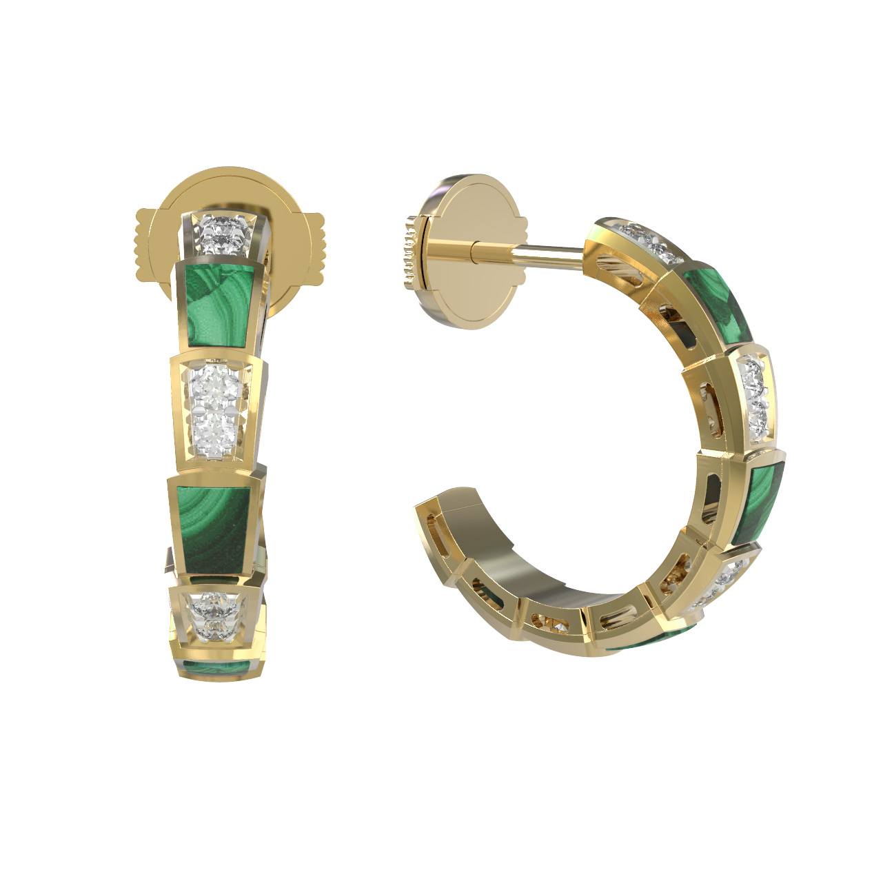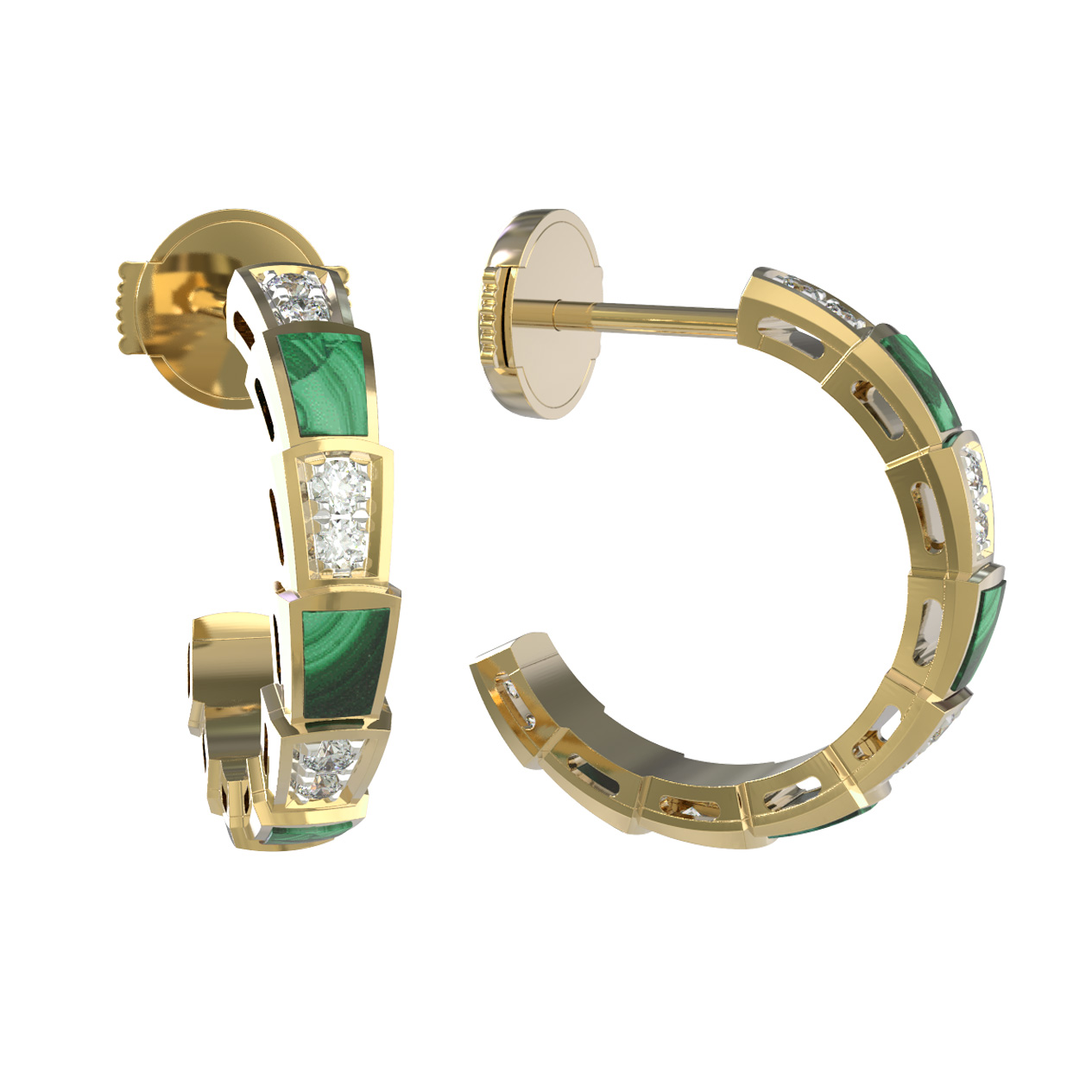 Серьги из лимонного золота c бриллиантами и малахитом