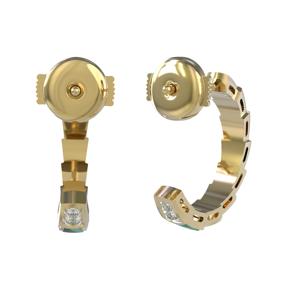 Серьги из лимонного золота c бриллиантами и малахитом