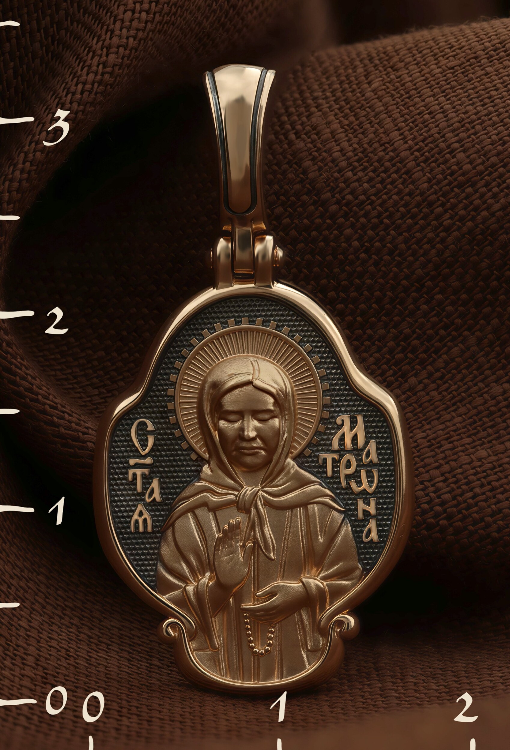 На обороте образка написана молитва: «О Блаженная мати Матроно, услыши насгрешных, молящихся к Тебе».