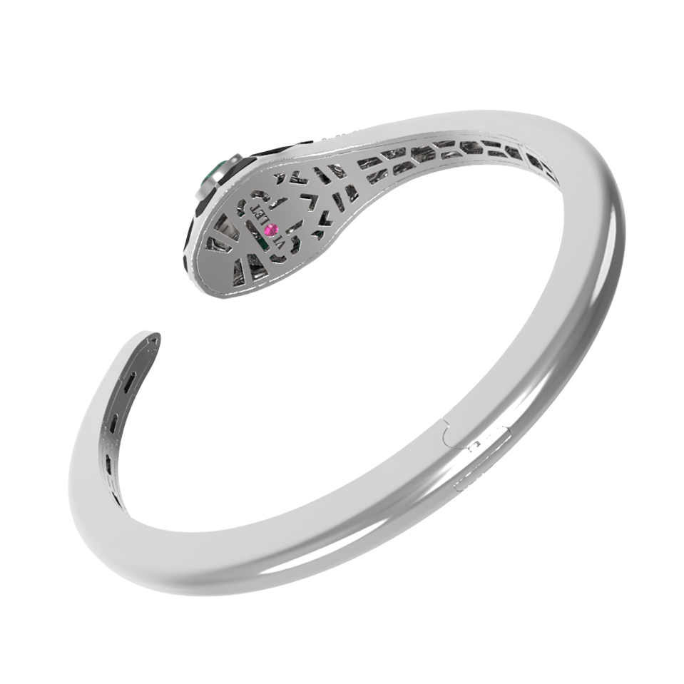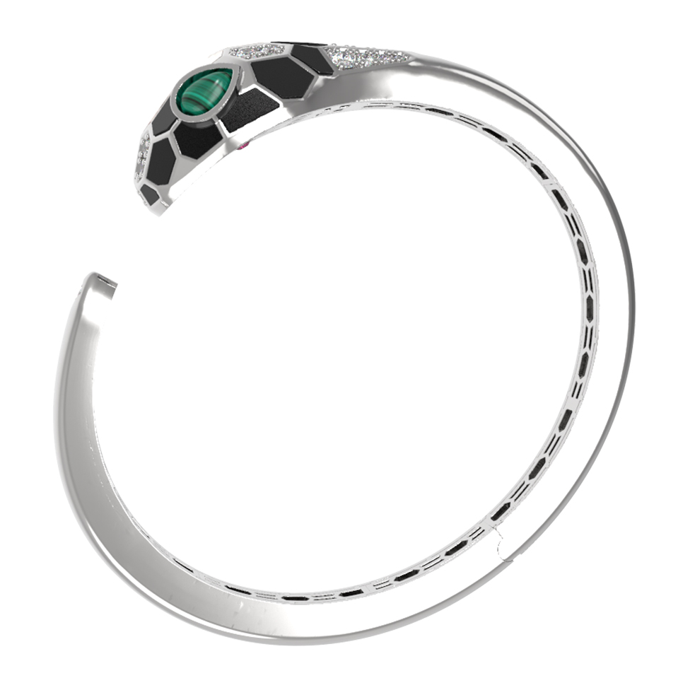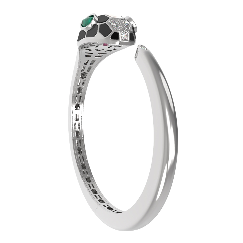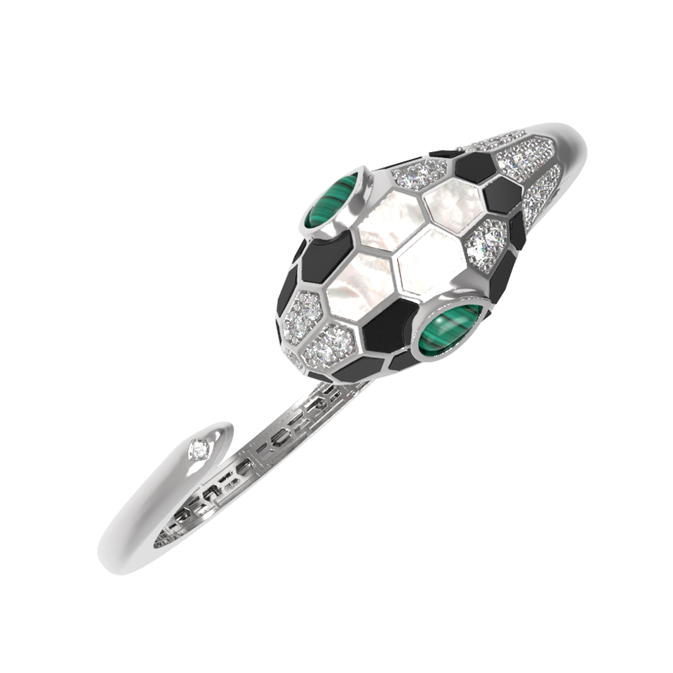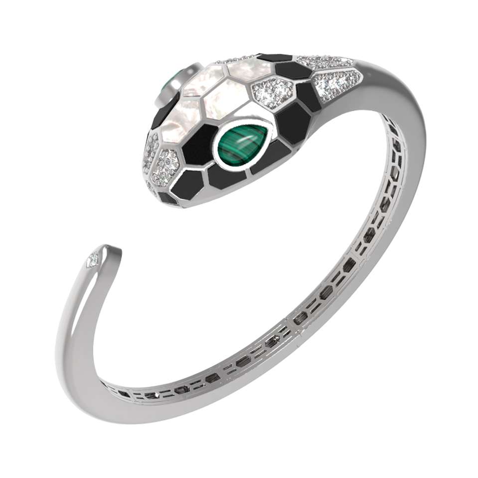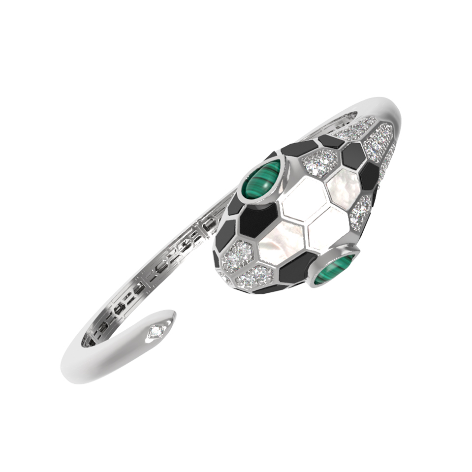 Браслет из белого золота c бриллиантами, рубином, ониксом, малахитом и перламутром