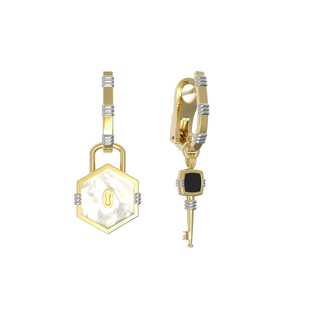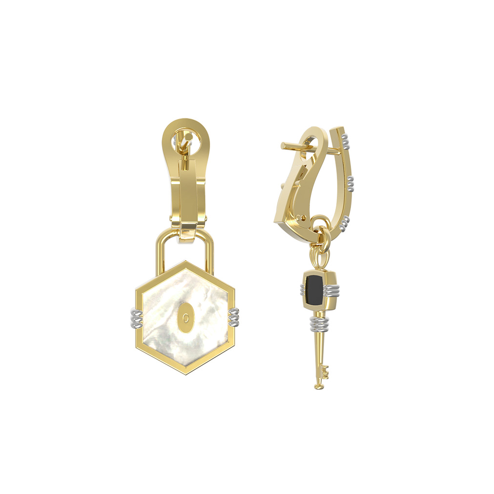Серьги из лимонного золота c ониксом и перламутром