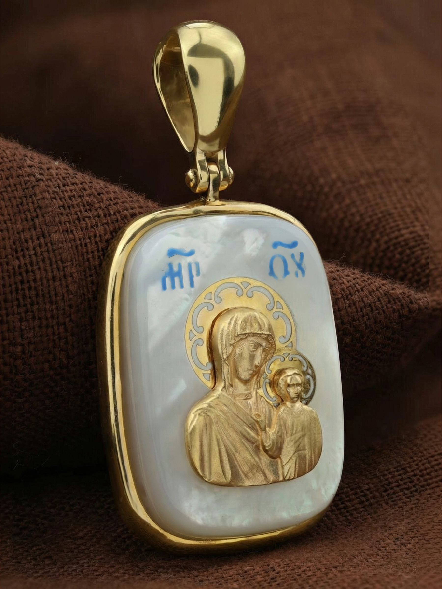 Образок из лимонного золота c эмаль и перламутром