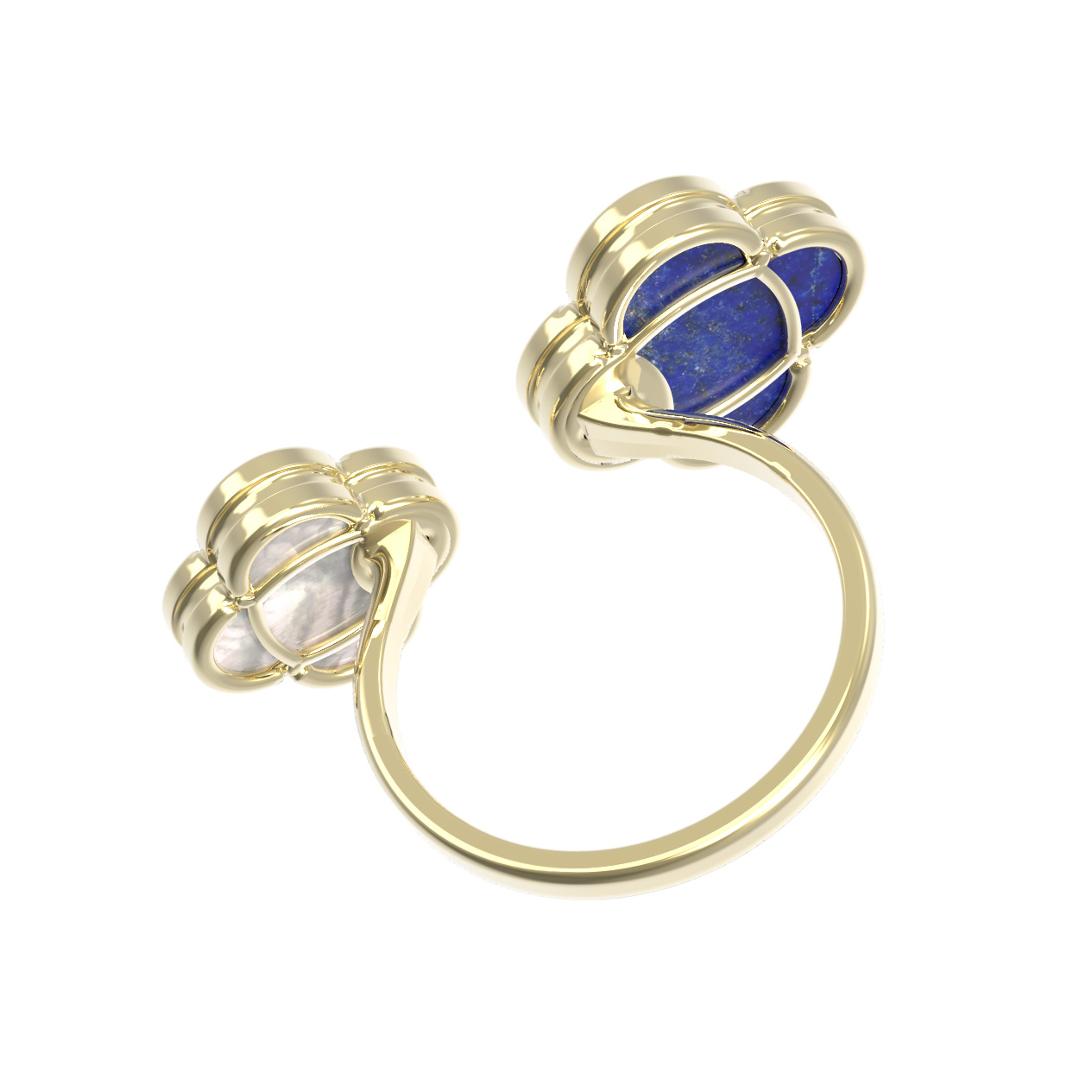 Кольцо из лимонного золота c лазуритом и перламутром