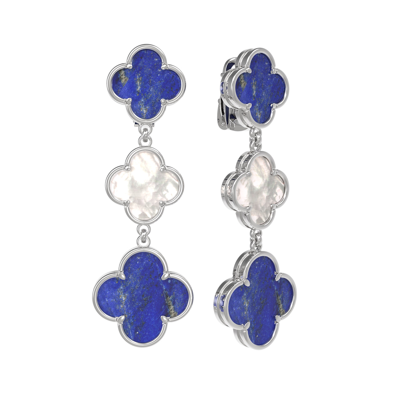 Серьги из белого золота c лазуритом и перламутром